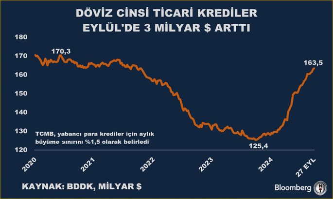 Bankacılık Düzenleme ve Denetleme Kurumu (BDDK) verilerine göre, döviz kredileri 27 Eylül haftasında 163,5 milyar dolara ulaştı.