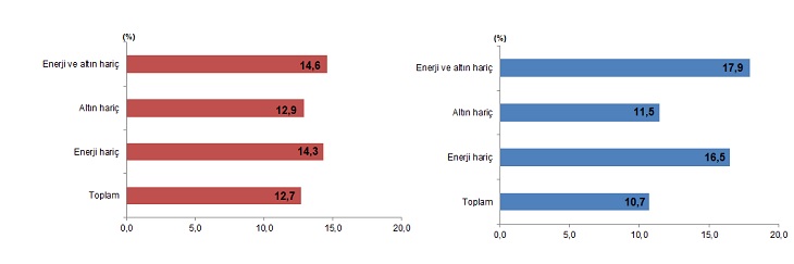 Aralık ayında enerji ürünleri ve parasal olmayan altın hariç ithalat %17,9 artarak 23 milyar 413 milyon dolardan, 27 milyar 614 milyon dolara yükseldi.