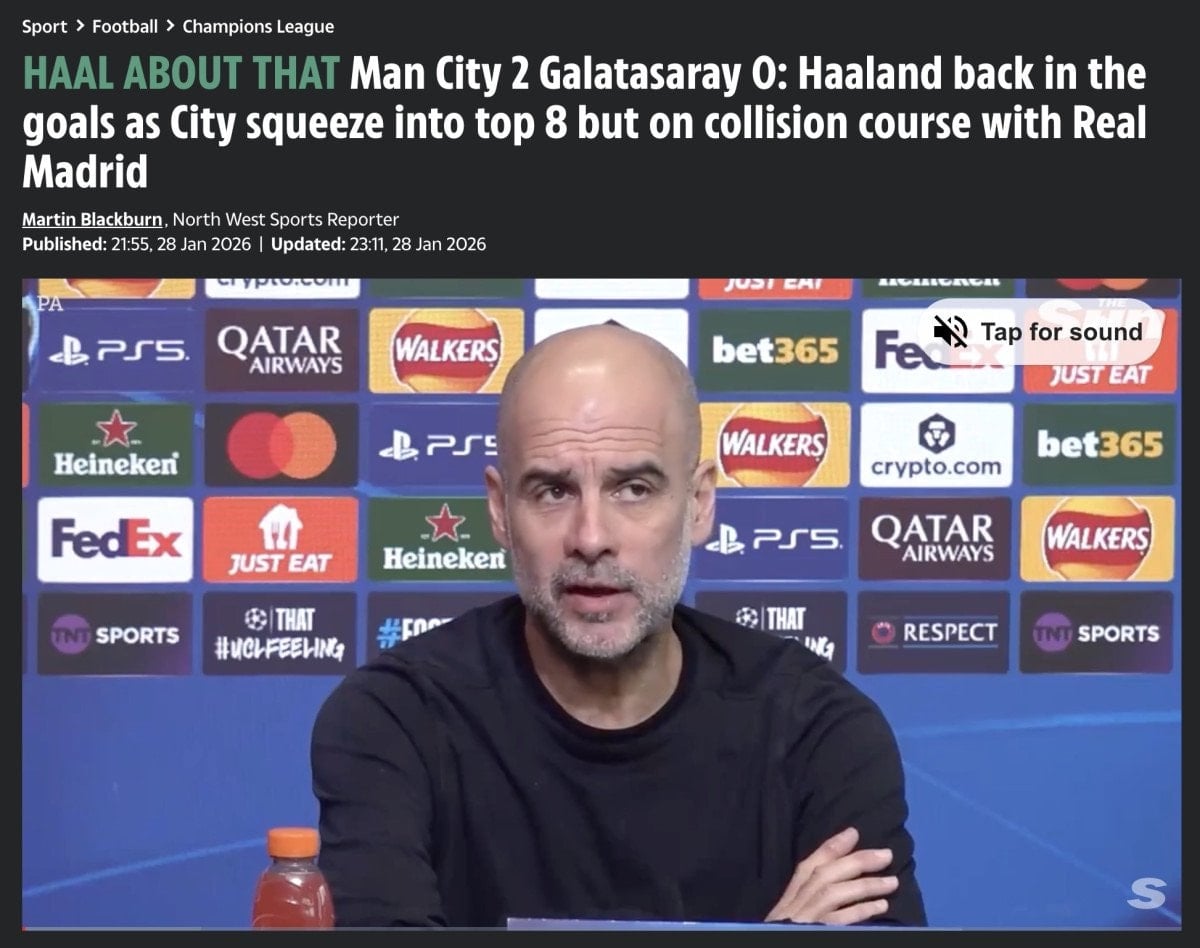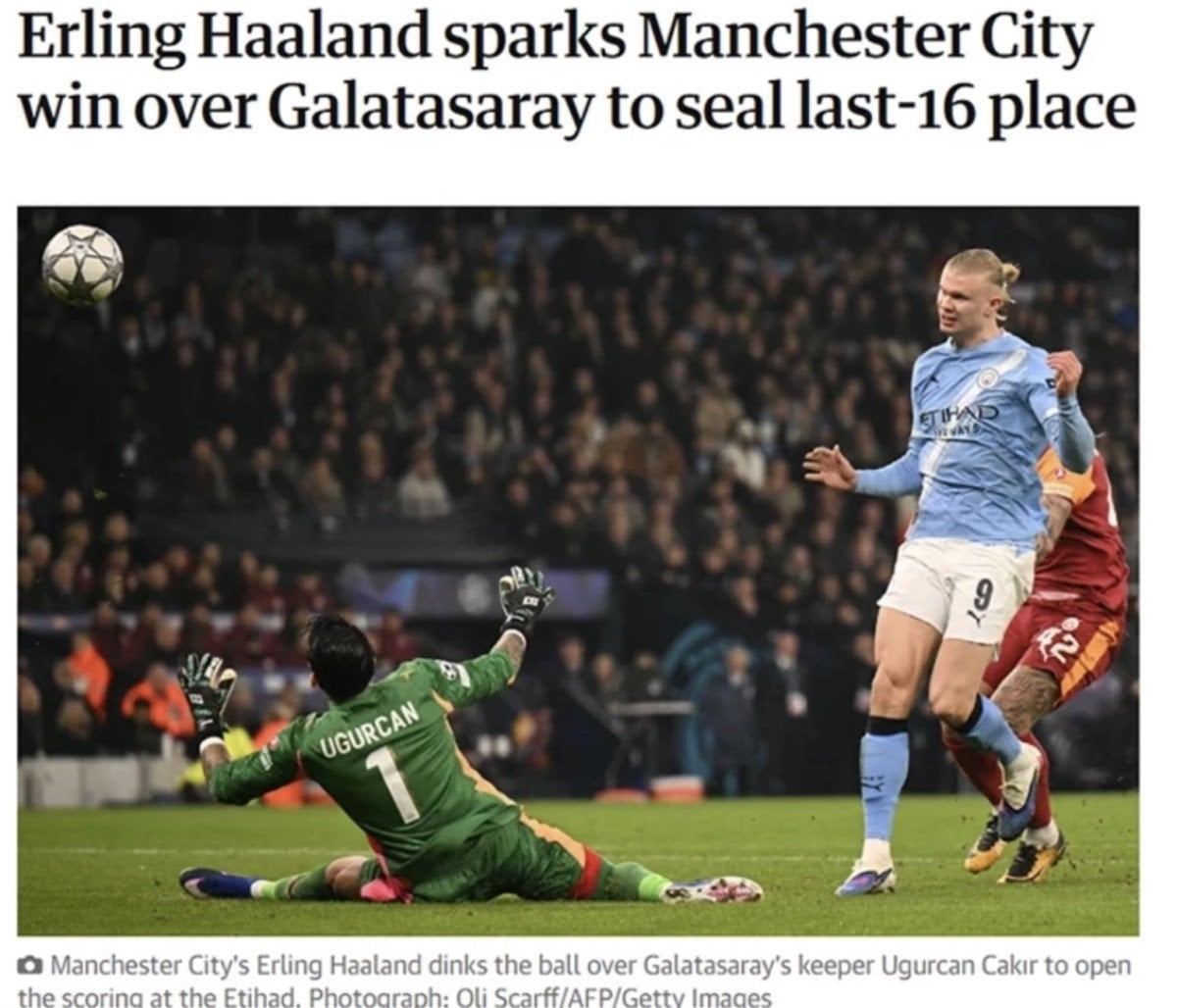 Aldığı galibiyetle ilk 8’e giren Manchester City’nin Galatasaray maçını, İngiltere basını manşetlerine taşıdı.