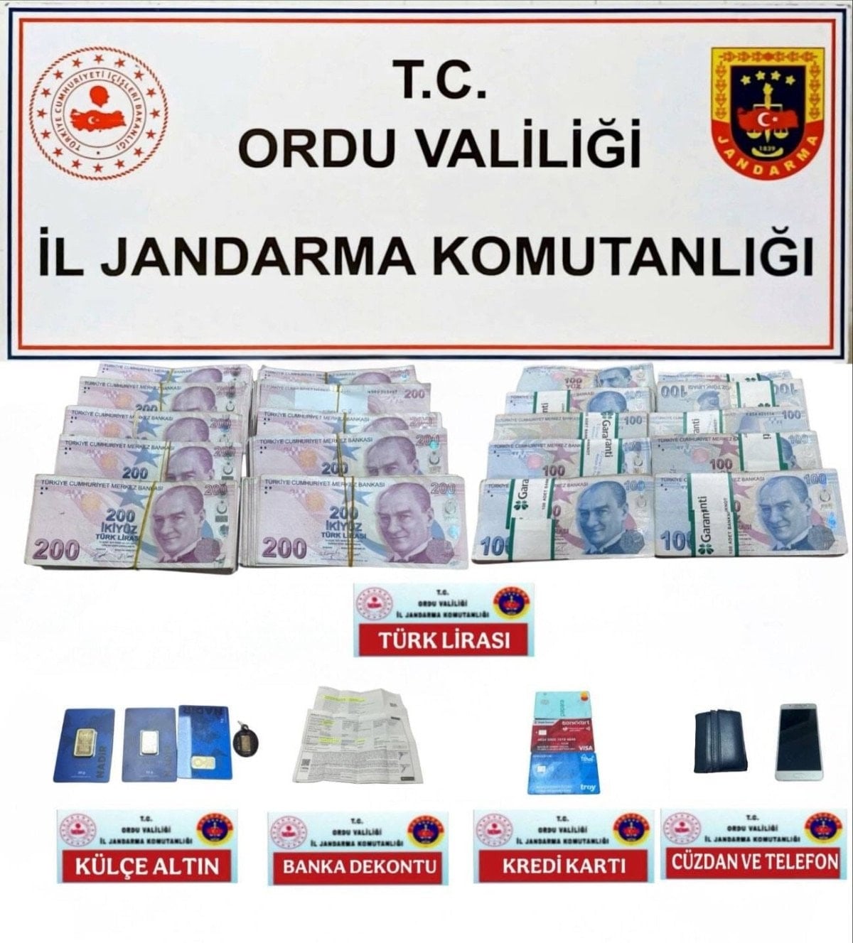 Altınordu ilçesinde suçüstü yakalanarak gözaltına alınan M.E.Ö. ve B.K.’nin yapılan üst aramasında, dolandırıcılık suçundan elde ettikleri 387 bin 70 lira, 36 gram külçe altın, 500 Özbek Somu ve suçta kullanılan 1 cep telefonu ile 3 banka kartı ele geçirildi, 2 şüpheli gözaltına alındı.