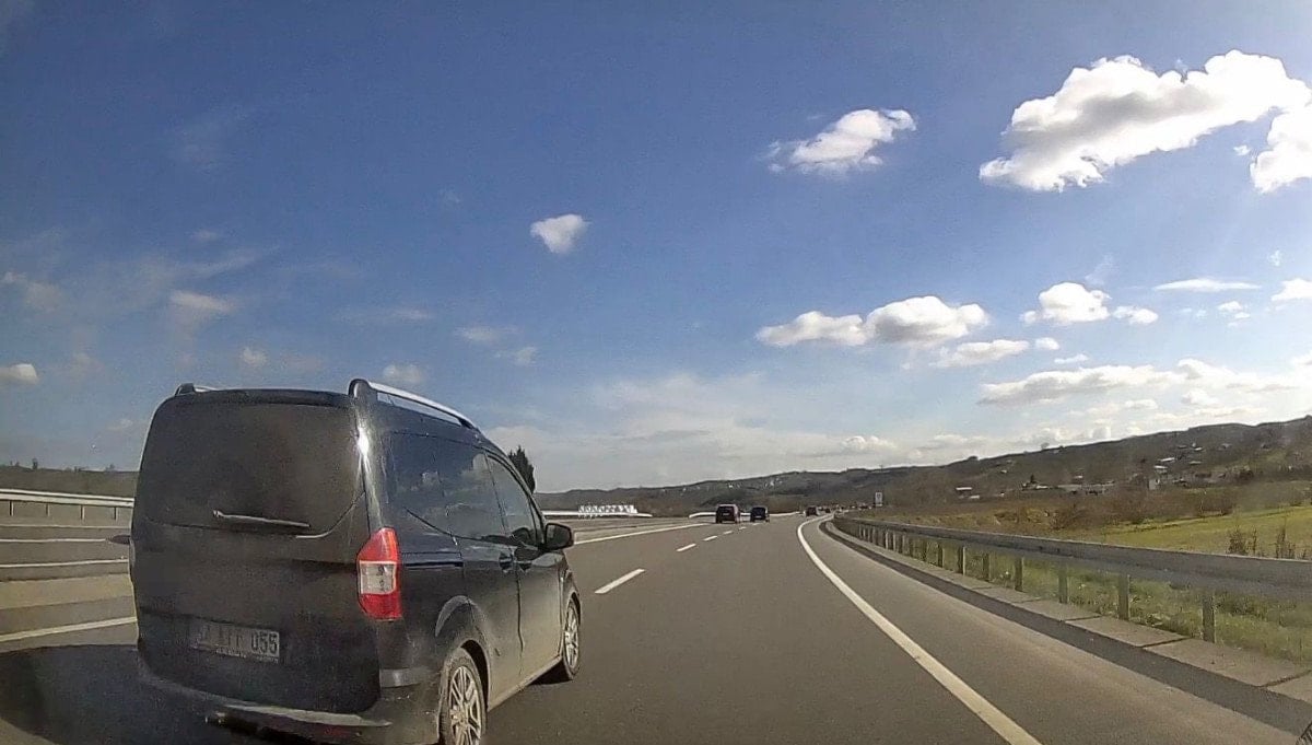 İki araç arasındaki mesafenin yok denecek kadar az olduğu anlar, büyük bir kazanın eşiğinden dönüldüğünü ortaya koydu. Görüntülerde, hafif ticari aracın silme geçişin ardından bir süre orta şeritte ilerlediği, sinyal vermeden önce sağ şeride ardından sol şeride geçerek yoluna devam ettiği görüldü.