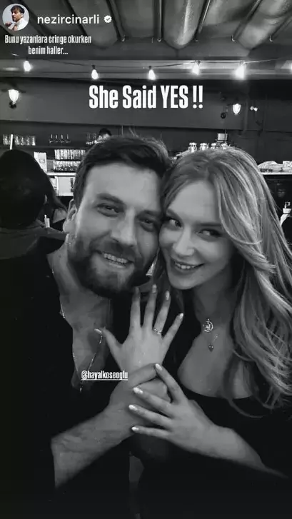 Köseoğlu, 33. yaş gününde hayatının en özel sürprizlerinden birini yaşamıştı. Nezir Çınarlı, Hayal Köseoğlu’na doğum gününde romantik bir evlilik teklifinde bulunmuştu. Köseoğlu, bu özel ana “Evet” yanıtını vermişti.