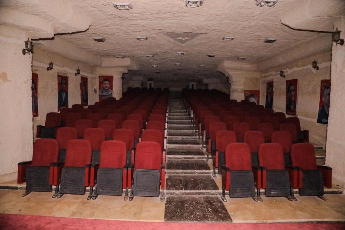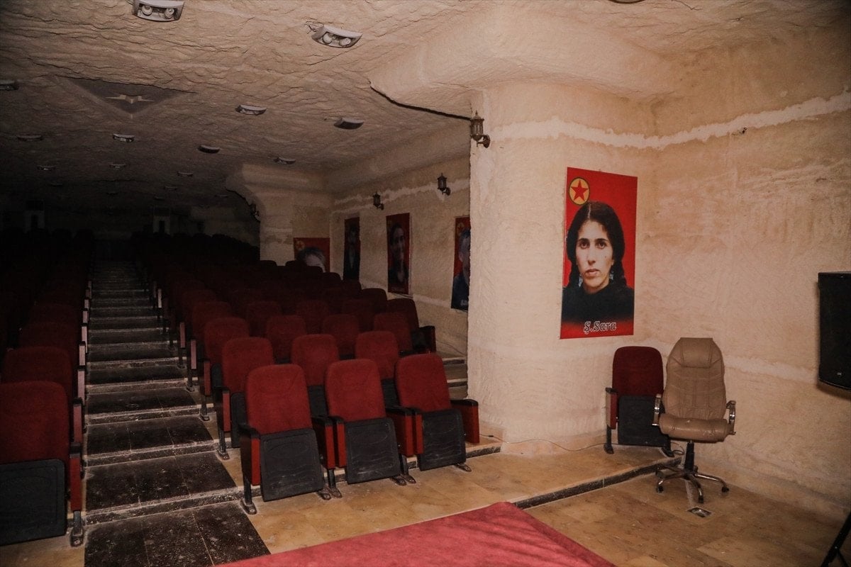 Örgüt sembolleri ve afişlerinin yer aldığı “yer altı şehri” içerisinde sinema salonu, amfi ve fırın da yer alıyor.