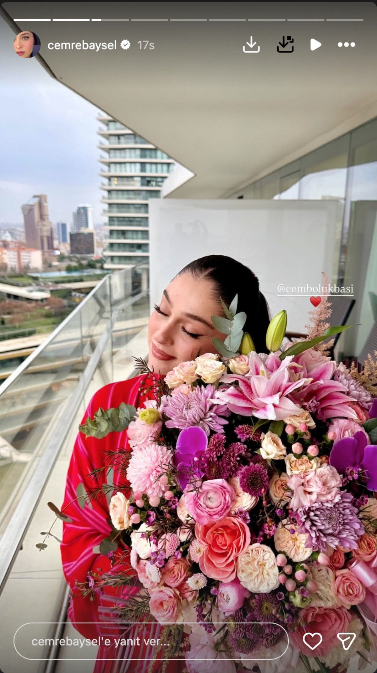 Güzel oyuncu, Instagram hesabından sevgilisinin kendisine gönderdiği çiçeği paylaşmıştı.
