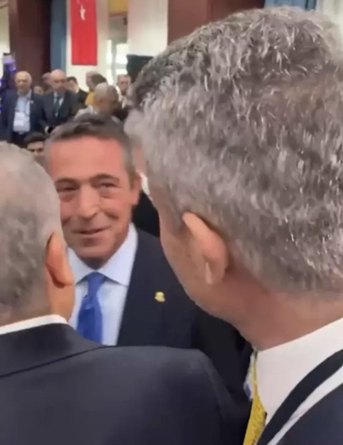 Ali Koç, salona girdiği sırada başkan Sadettin Saran ile selamlaşarak bir süre sohbet etti.