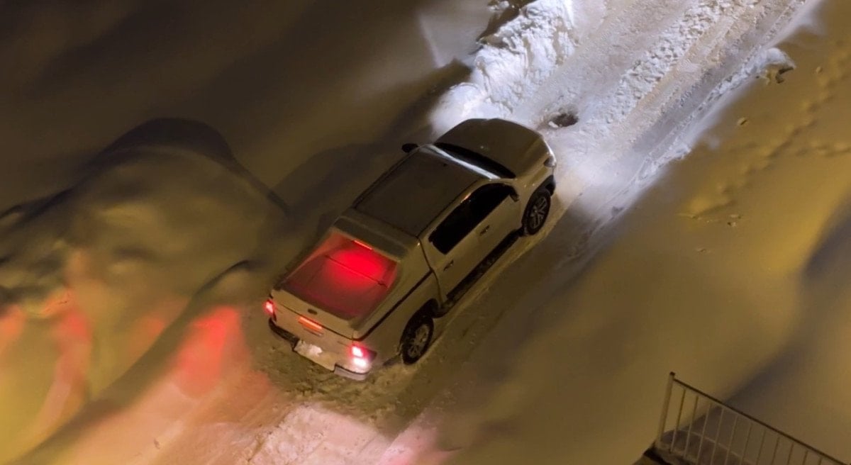 İlçenin Esentepe Mahallesi ile Pizok TOKİ konutları 1. etap arasındaki güzergahta seyreden bir araçlar, yoğun kar birikintisi nedeniyle yolda kaldı.