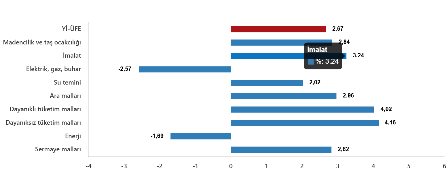 Yİ-ÜFE imalat ürünlerinde aylık %3,24 arttı