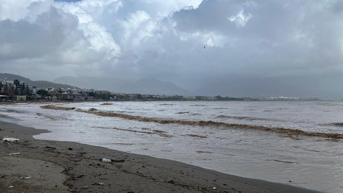 Antalya’da toz taşınımı ve sağanak yağışın ardından denizin rengi değişti