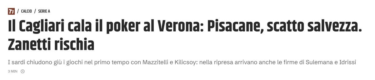 Gazete, Semih’in teknik kapasitesine vurgu yaparak Cagliari Teknik Direktörü Fabio Pisacane’nin, “O olağanüstü, inanılmaz bir teknik yeteneğe sahip” sözlerine yer verdi.