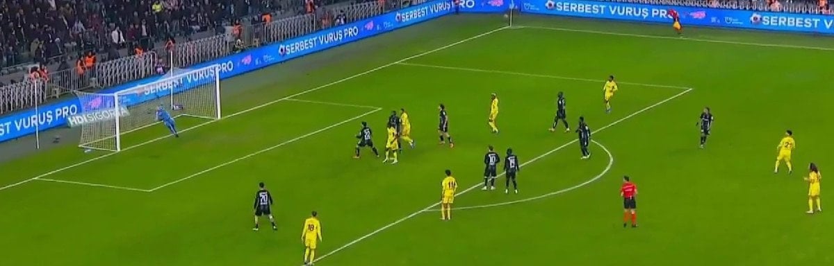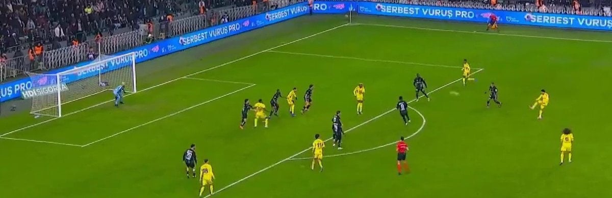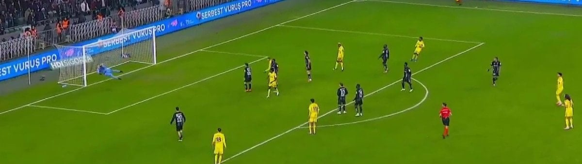 Dakikalar 45+1’i gösterdiğinde sarı-lacivertli ekibin sol kanattan kullandığı taç atışı sonrası Anthony Musaba’nın ceza yayına doğru taşıdığı topu Anderson Talisca ters kanada aktardı.