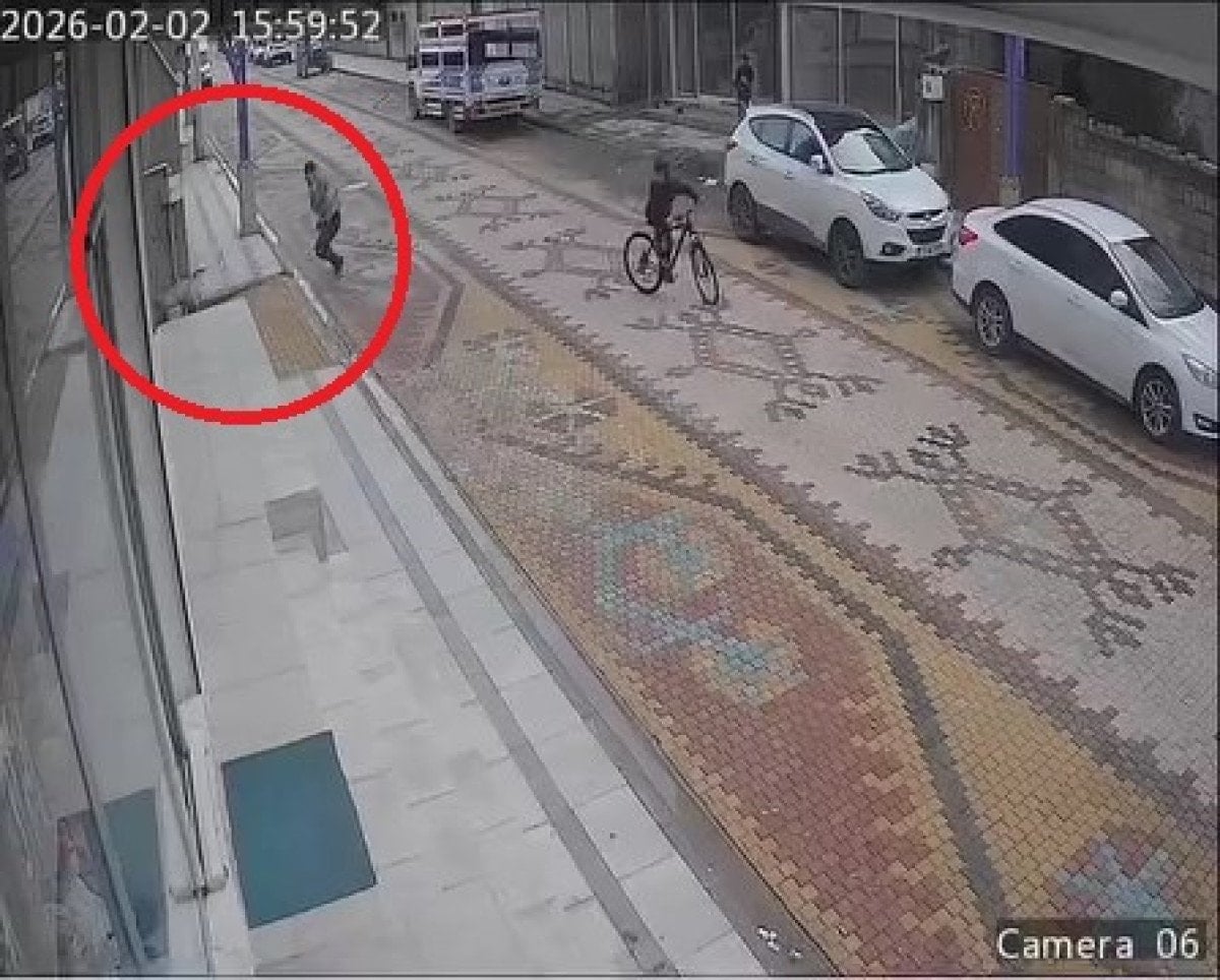 O anlar, cadde üzerindeki bir iş yerinin güvenlik kamerasına yansıdı.