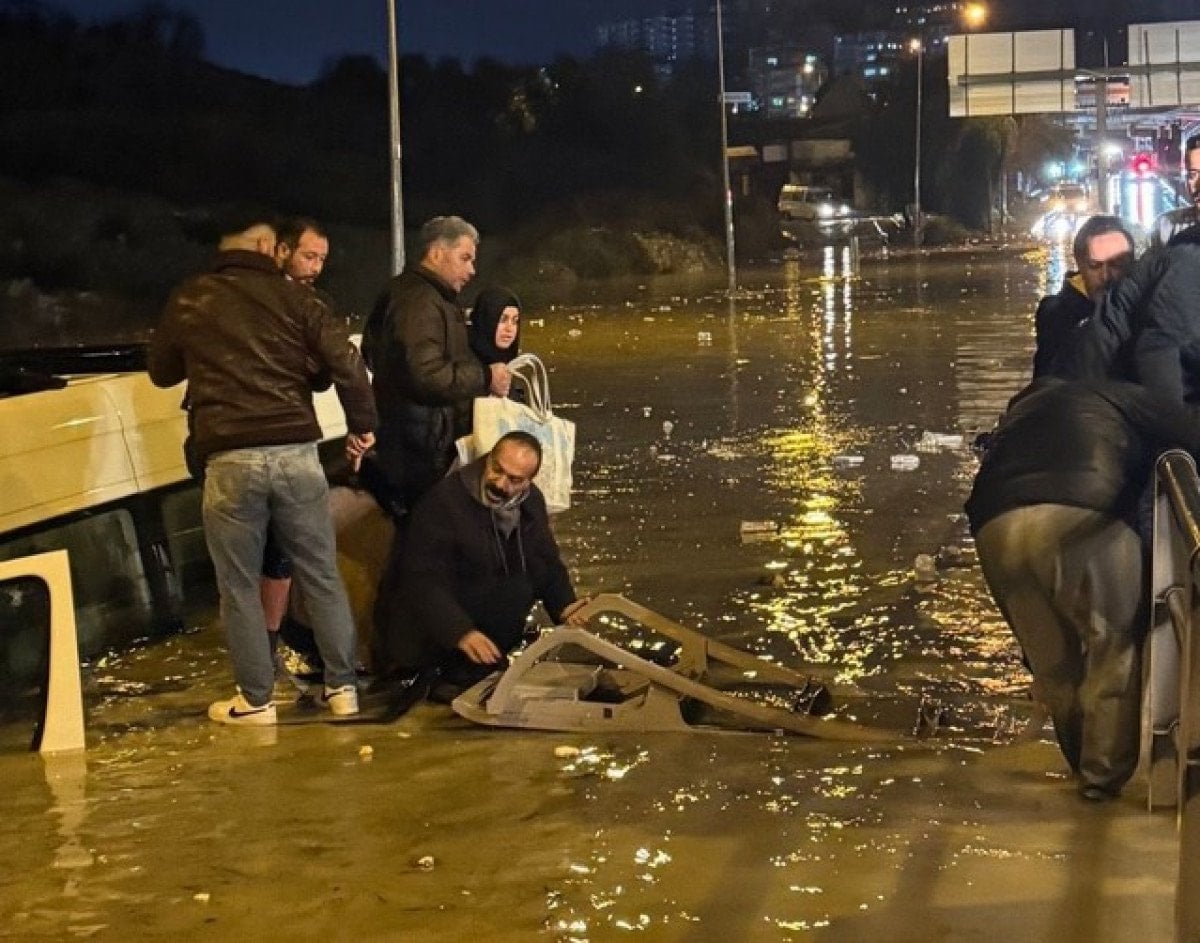 Yoğun yağış sırasında seyir halinde olan araçlardan bazıları yollarda mahsur kalırken, 19 yolcusuyla ilerleyen bir minibüs çevreyolunun bağlantı noktasında sel sularına kapıldı. Kısa sürede yarısına kadar suya gömülen minibüs hareket edemez hale geldi. İçerideki yolcular, hızla yükselen su seviyesi nedeniyle büyük panik yaşadı.