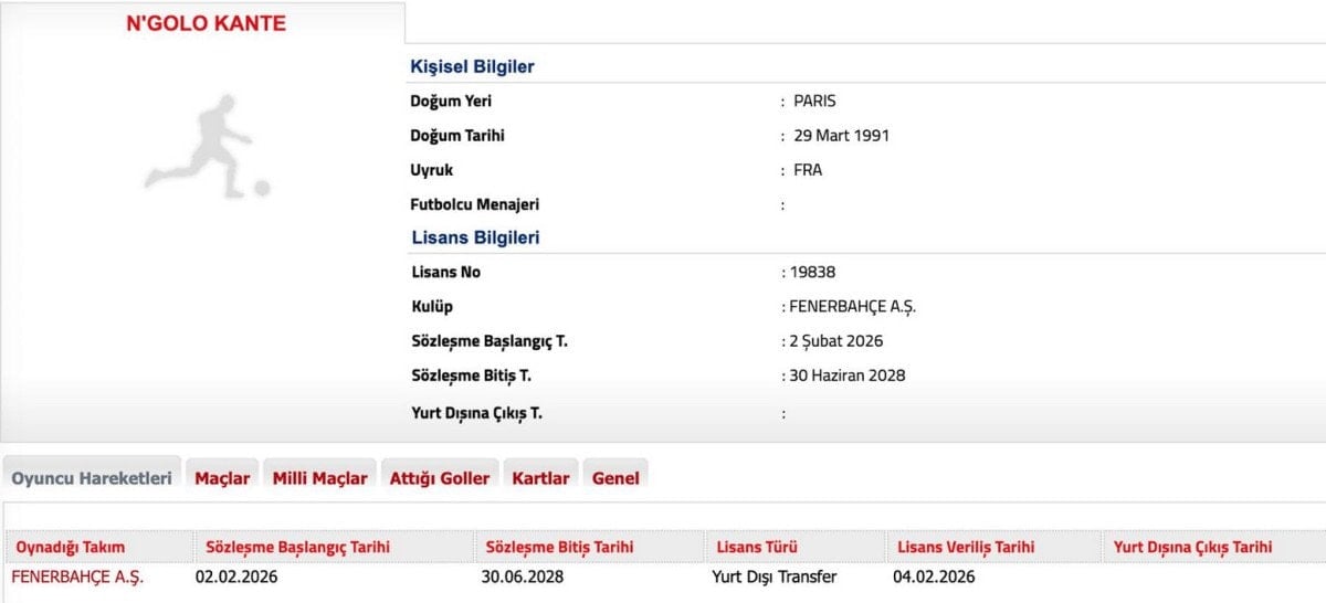N’Golo Kante’nin lisans bilgilerinin öncesinde Youssef En-Nesyri’nin sözleşmesinin karşılıklı feshedildiğini TFF’ye bildiren sarı-lacivertliler, bu gelişmenin ardından Kante’nin lisansını çıkardı.