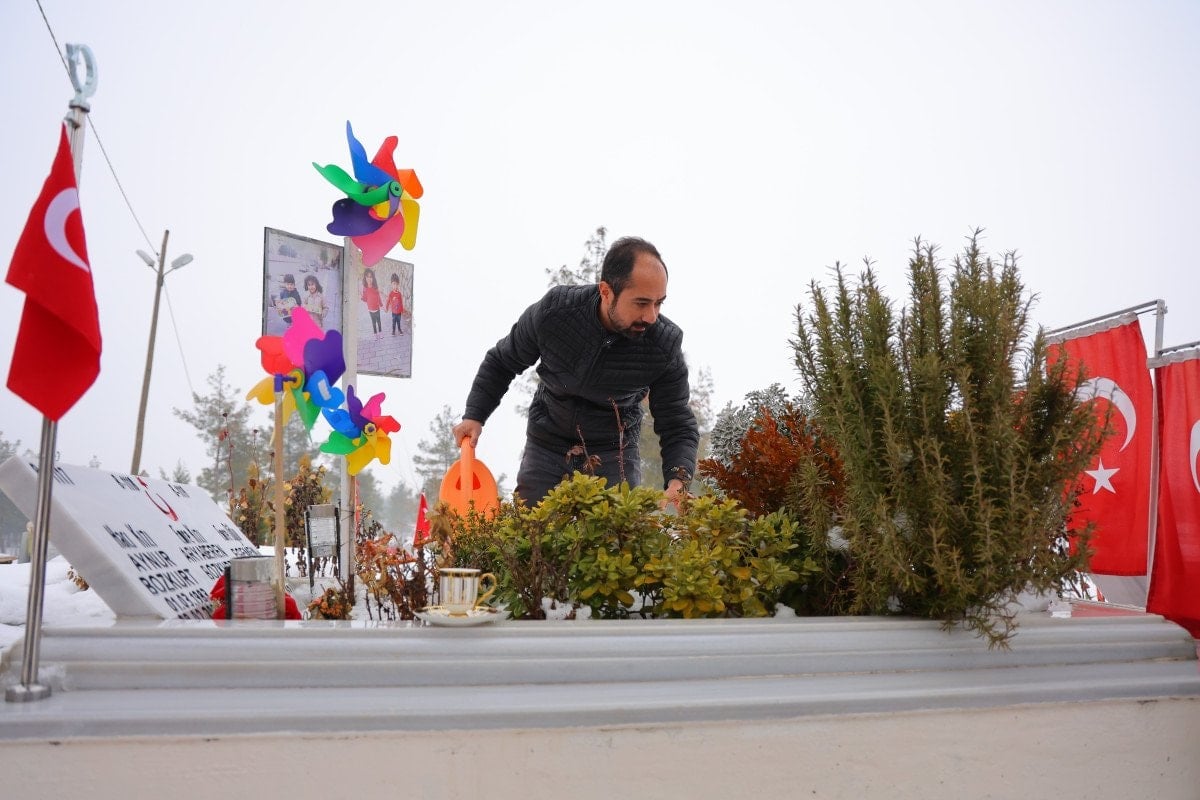 Yaşadığı acıyı anlatan Emre Bozkurt, “6 Şubat depremlerinde eşimi ve iki evladımı kaybettim. Geriye onarılan kabirleri kaldı. Üç yıl oldu ama zaman nasıl geçiyor, inan bugün bile anlamak mümkün değil.
