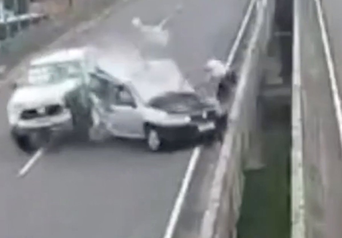 Sürücü, arkadan gelen aracın çarpmasının etkisi ile savrularak köprüden aşağı düştü.