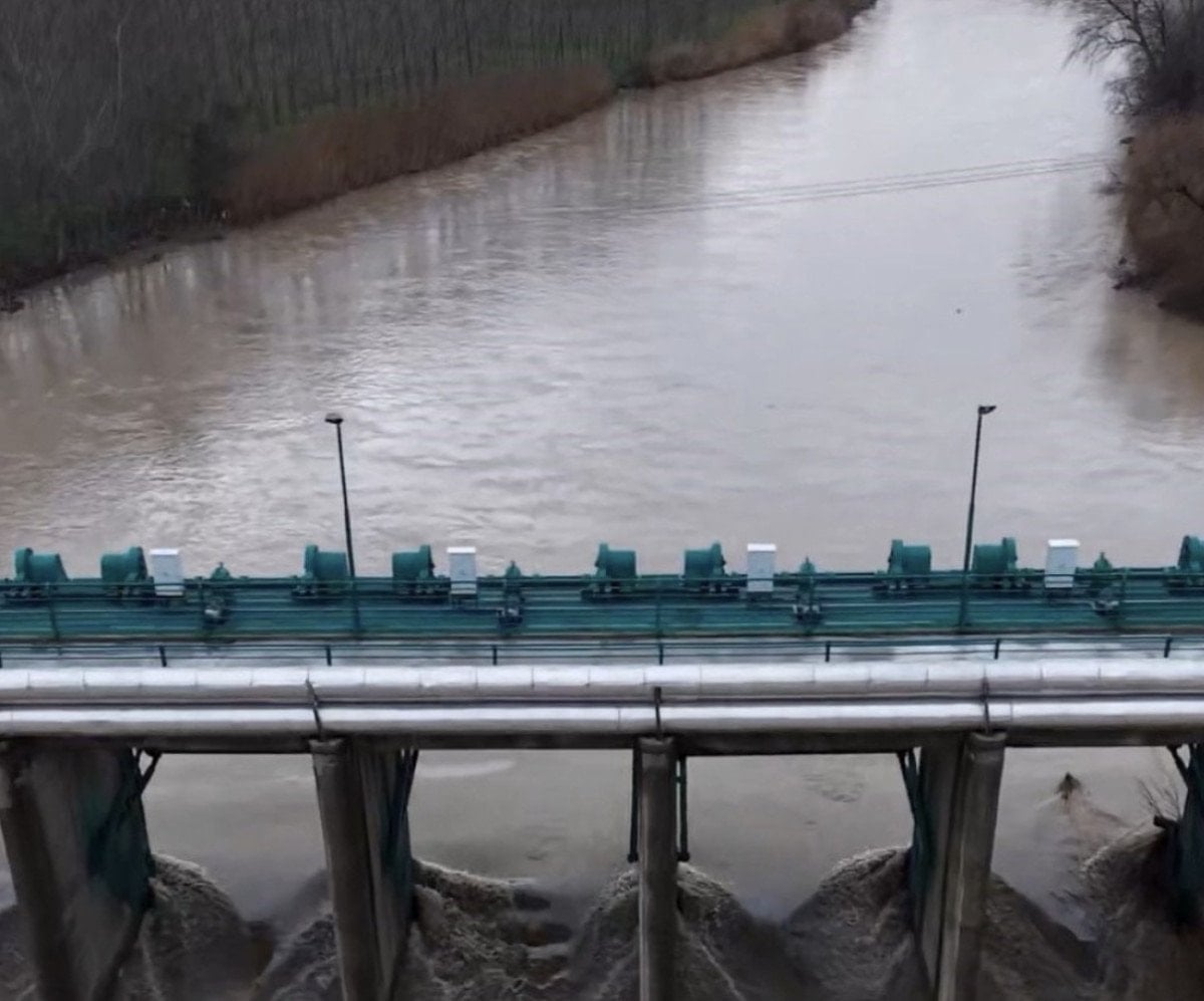 Drone’la kaydedilen görüntülerde, çaydaki su seviyesinin normalin üzerine çıktığı ve akış hızının belirgin şekilde arttığı görüldü.