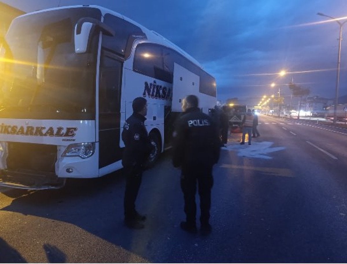 Otobüsteki yolcular, kazadan yara almadan kurtulurken, firma tarafından temin edilen başka bir otobüsle yollarına devam etti.