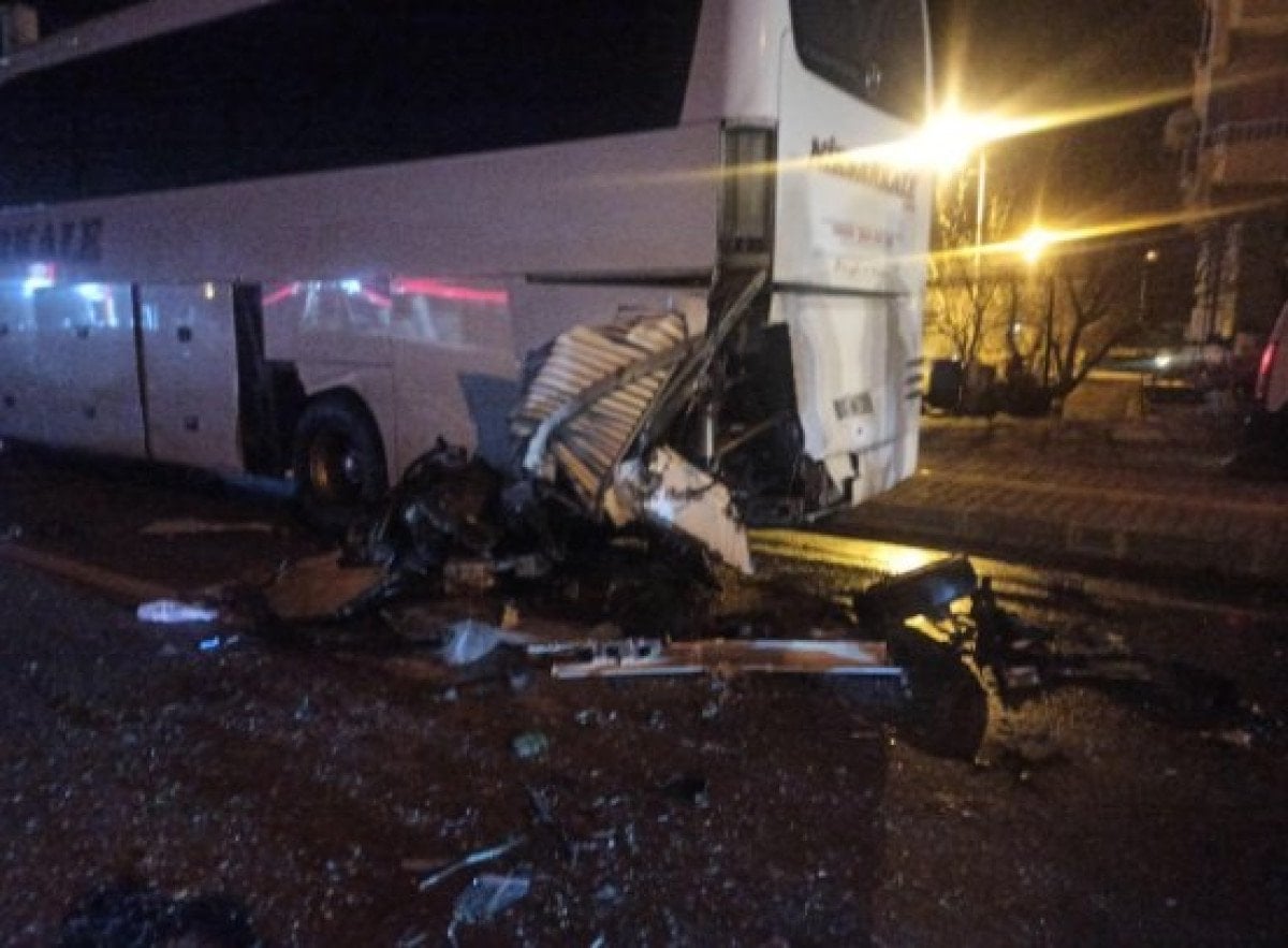 Çorum’un Osmancık ilçesi D-100 kara yolunda Ömer Derindere Bulvarı’nda Samsun yönüne seyir halinde olan Nuh D. yönetimindeki hafif ticari araç, yol kenarında park halindeki Ferhat A. idaresindeki yolcu otobüsüne arkadan çarptı.