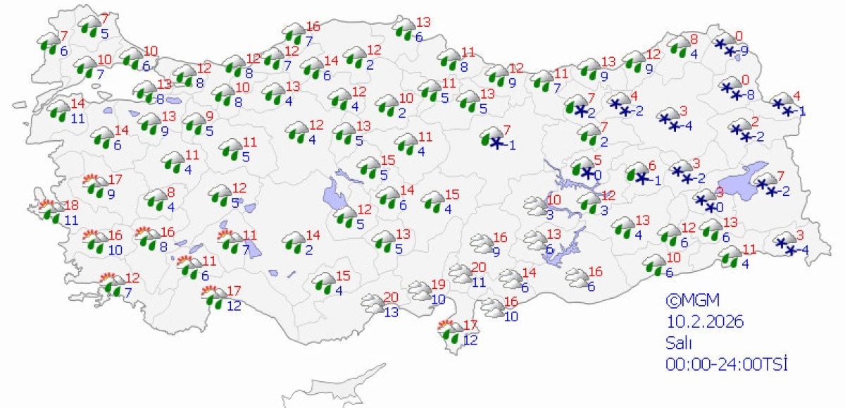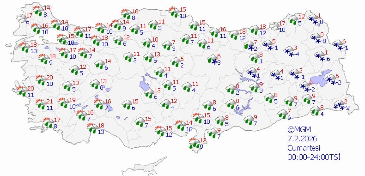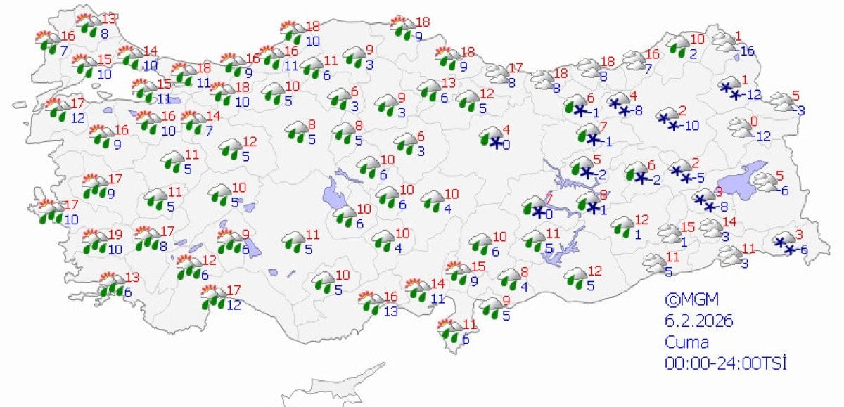 Bugün ülkenin batı ve güney kesimleri ağırlıklı yağışlı.