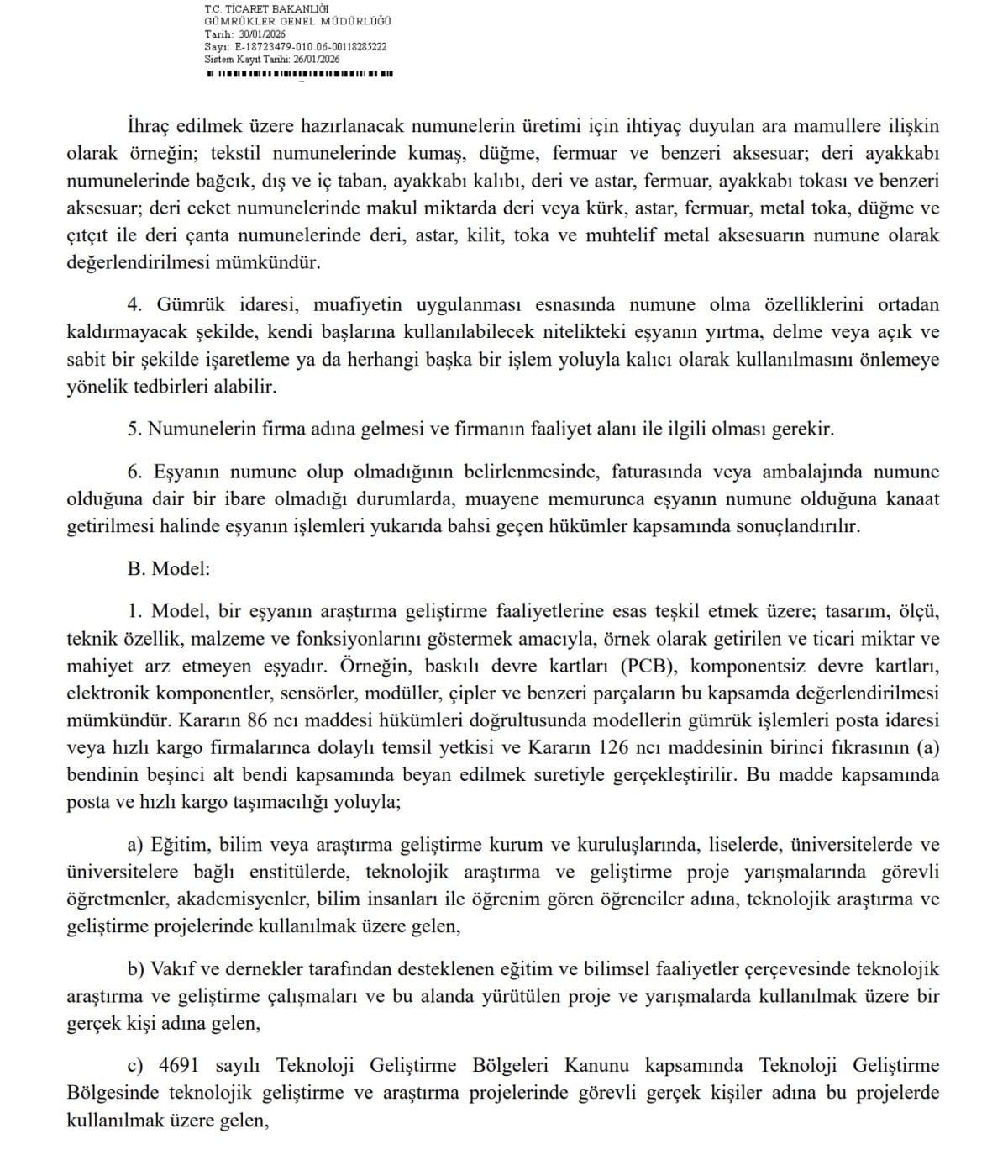 Yeni düzenleme, üniversiteler, öğrenciler ve Ar-Ge personelini yakından ilgilendiriyor. PCB, çip, sensör gibi ticari olmayan numuneler; Ar-Ge, eğitim ve test amaçlı olmak kaydıyla yurtdışından getirilebilecek.