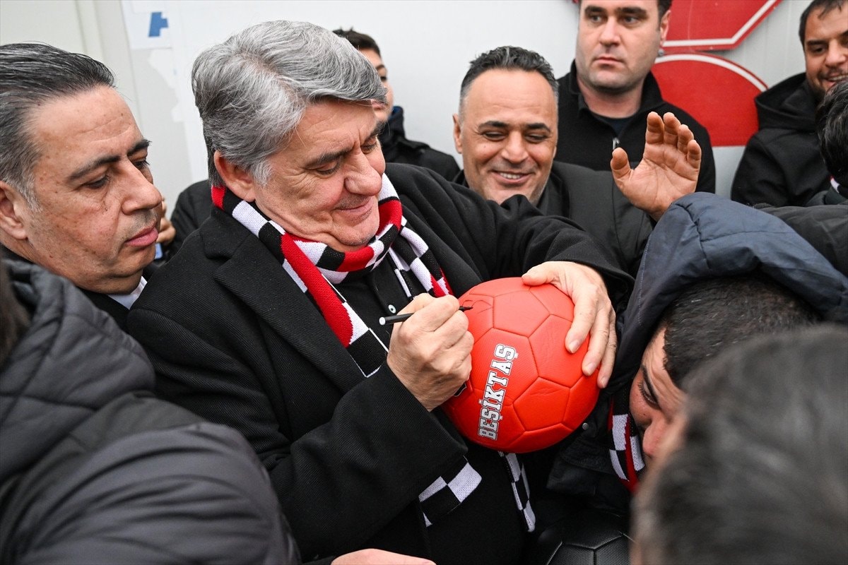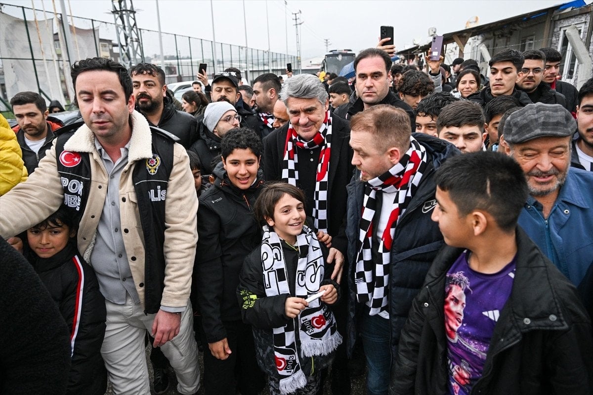Beşiktaş Kulübü Başkanı Serdal Adalı, Hatay’ın Defne İlçesinde depremzedelerin kaldığı konteyner kenti ziyaret etti.