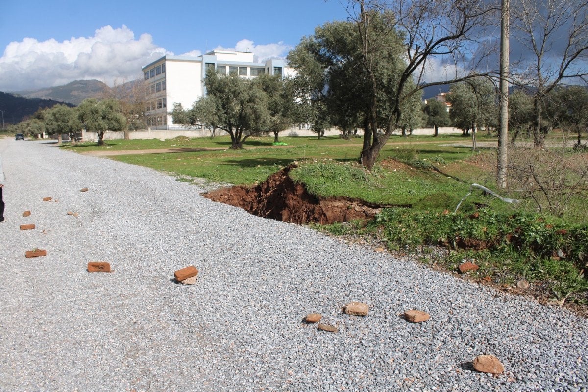 Aydın’da yol çöktü, 20 metrelik obruk oluştu