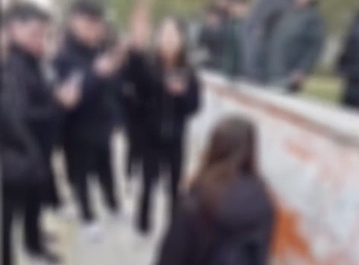 13 yaşındaki E.T, etrafını saran birçok öğrencinin önünde dizlerinin üzerine çöktürülerek kendisini darp eden 3 kız arkadaşından tehditlerle özür dilemeye zorlandı.