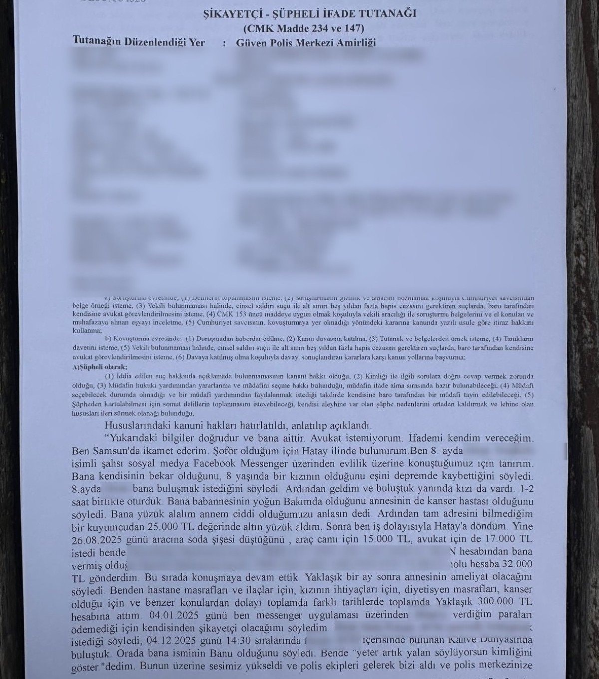 Samsun’da yaşayan tır şoförü Muzaffer Bayraktar, sosyal medya üzerinden tanıştığı bir kadının kendisini evlilik vaadiyle kandırarak yüklü miktarda para aldığı iddiasıyla suç duyurusunda bulundu.
