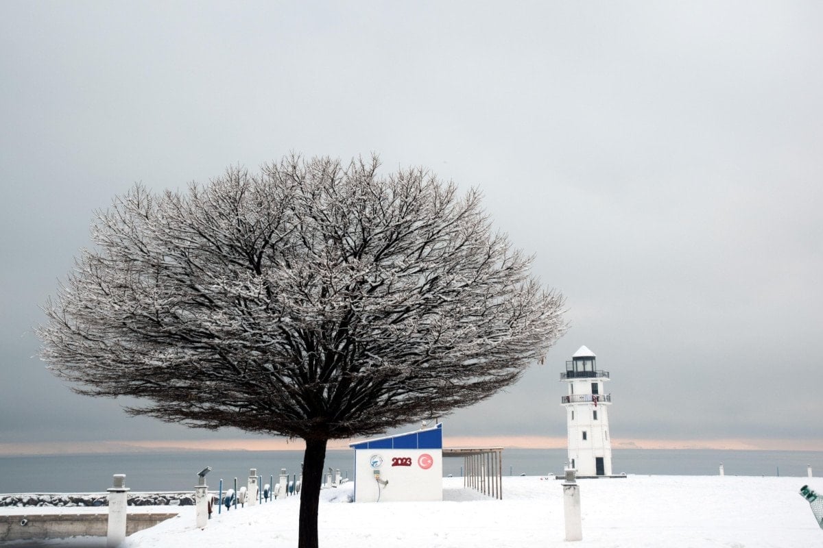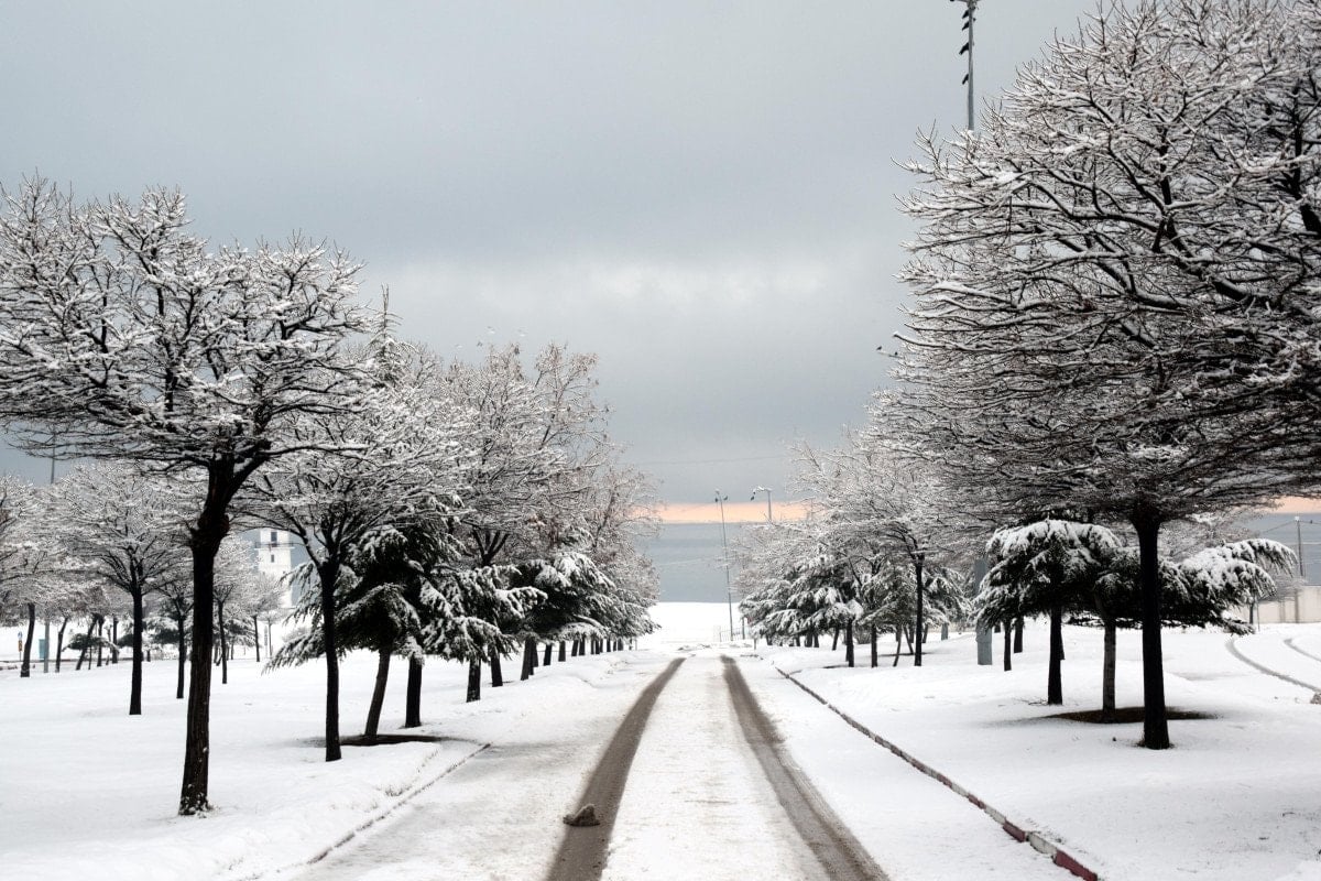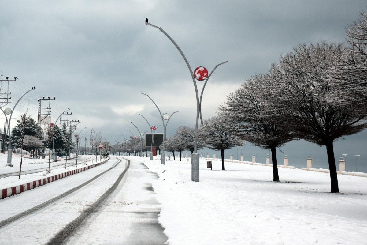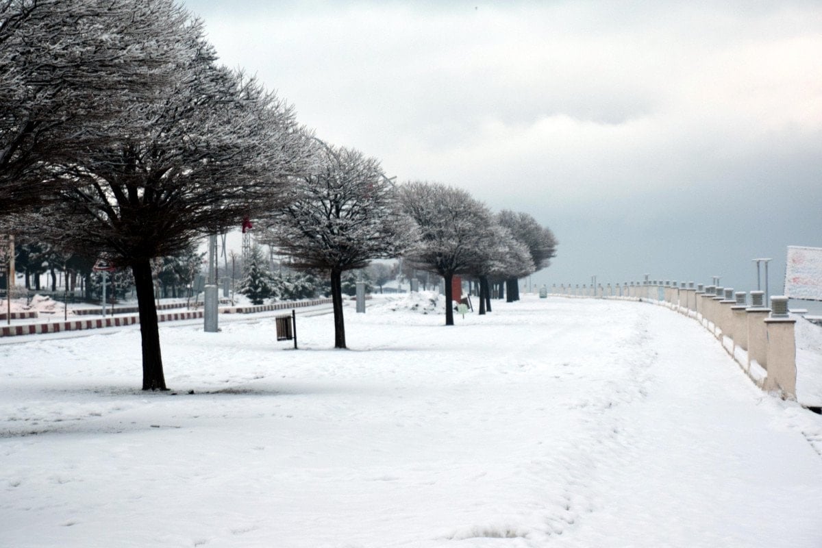 Van Gölü kıyısında karla kaplanan yürüyüş yolları, sahil bandı ve ağaçlar güzel manzaralar oluşturdu.