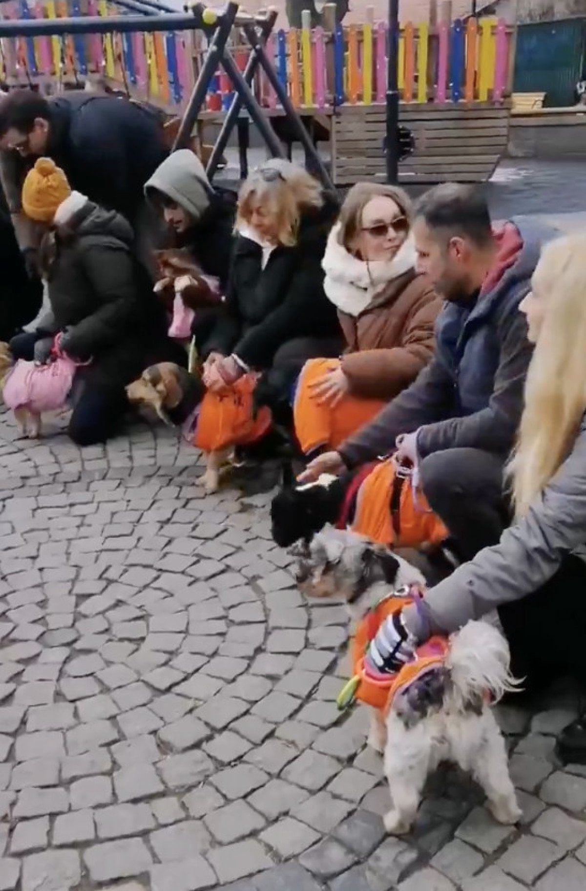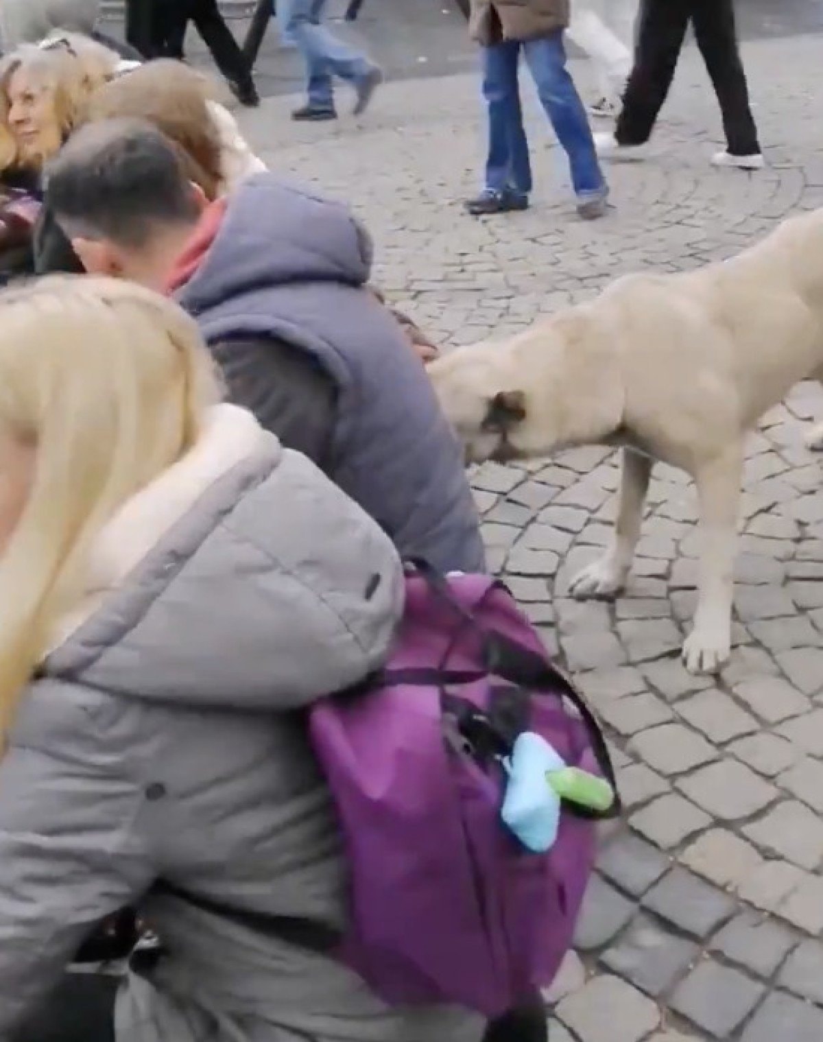 Söz konusu görüntülerde, eylem yapan gruba bir sokak köpeğinin yaklaştığı, tedirgin olan bir kaç kişinin ise köpeği uzaklaştırdığı anlar yer aldı.