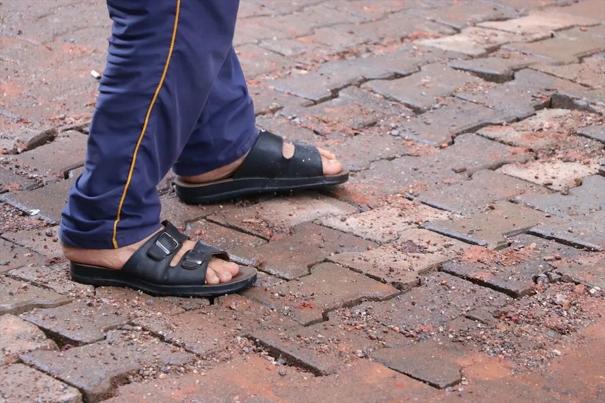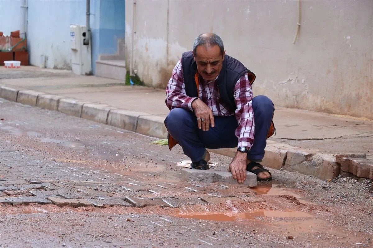Oluşan çukurlar nedeniyle araçlarının hasar gördüğünü belirten mahalle sakinleri, yoldaki çukurları kendi imkanlarıyla kapattı, üzerine parke taşları döşedi.