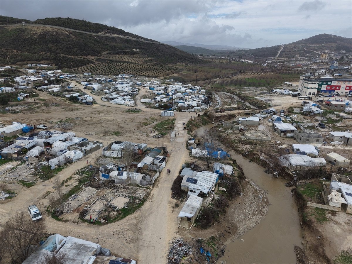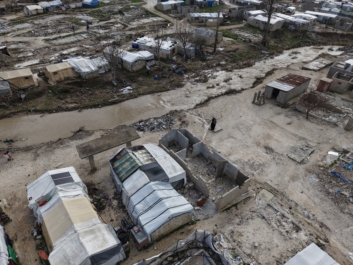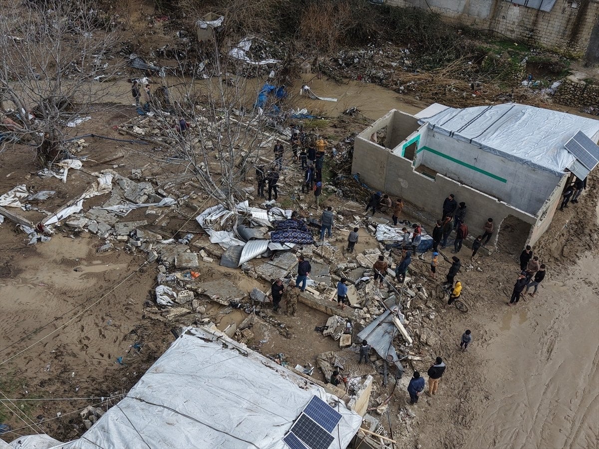 İdlib’in doğu kırsalında ani sağanakların ardından, dere kenarlarına kurulan derme çatma çadırların bulunduğu alanlar sular altında kaldı.