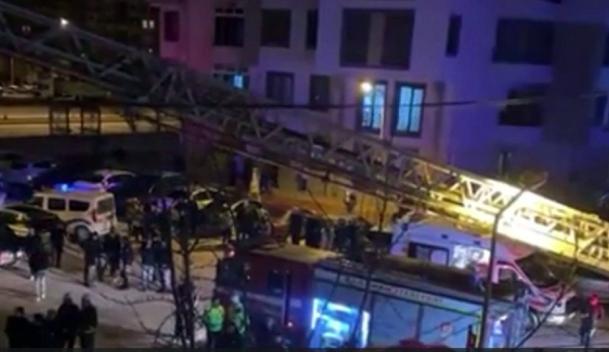 Polis, bina sakinlerini tahliye ederken; itfaiye de mahsur kalanları merdivenle kurtardı.