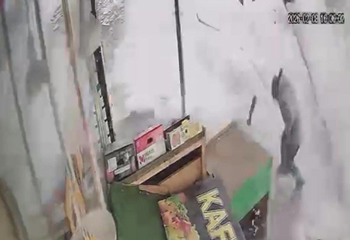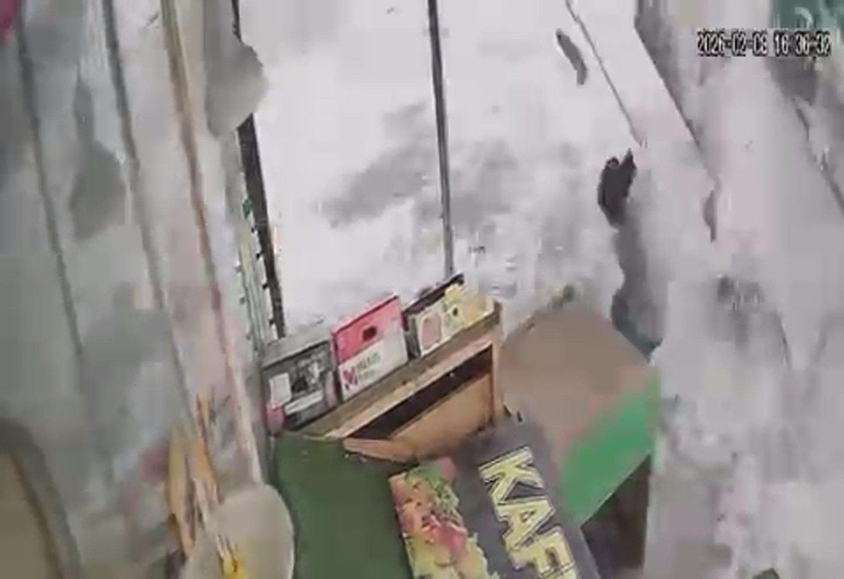 Kar yığınının altında kalmaktan saniyelerle kurtulan çocuk büyük korku yaşarken, olay bir iş yerinin güvenlik kamerasına yansıdı.