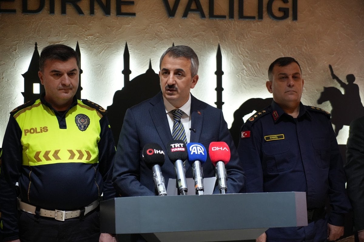 Edirne Valisi Yunus Sezer, asayiş toplantısının ardından yaptığı açıklamada taşkın riski bulunan Meriç Nehri’nde debinin düşüşe geçtiğini ve şehir merkezi için şu an bir risk bulunmadığını söyledi.