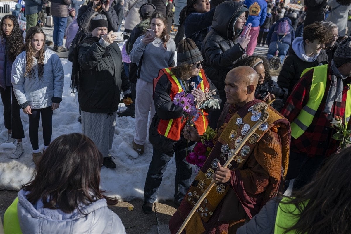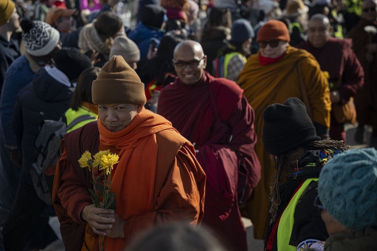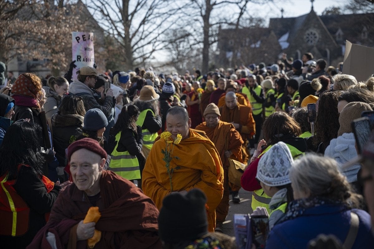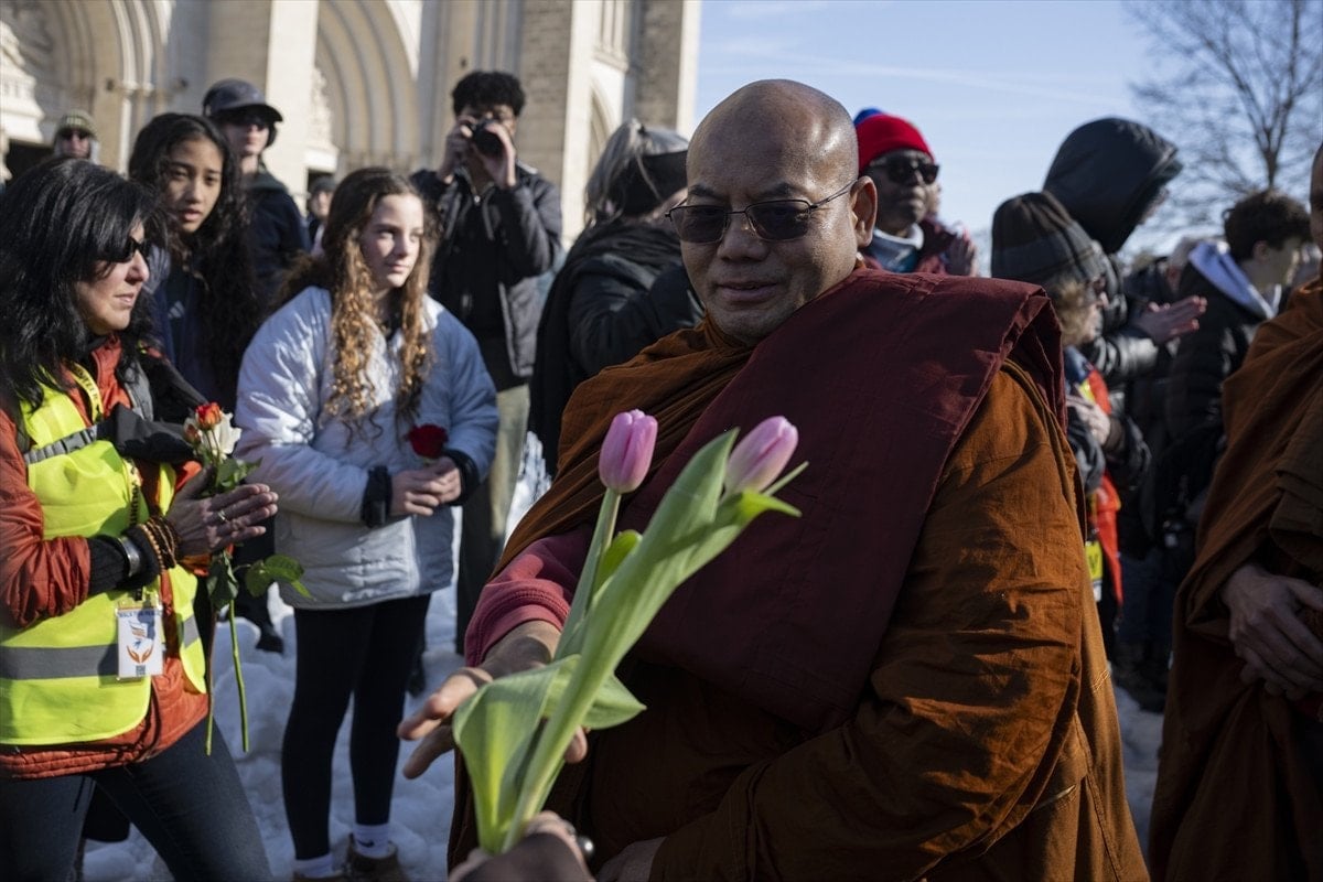 Washington’da büyük ilgiyle karşılanan Budist keşişler, yürüyüşleri sırasında vatandaşlarla sohbet ederek barış mesajlarını paylaştı. Etkinlik, başkentte toplanan kalabalık tarafından alkışlarla karşılandı.
