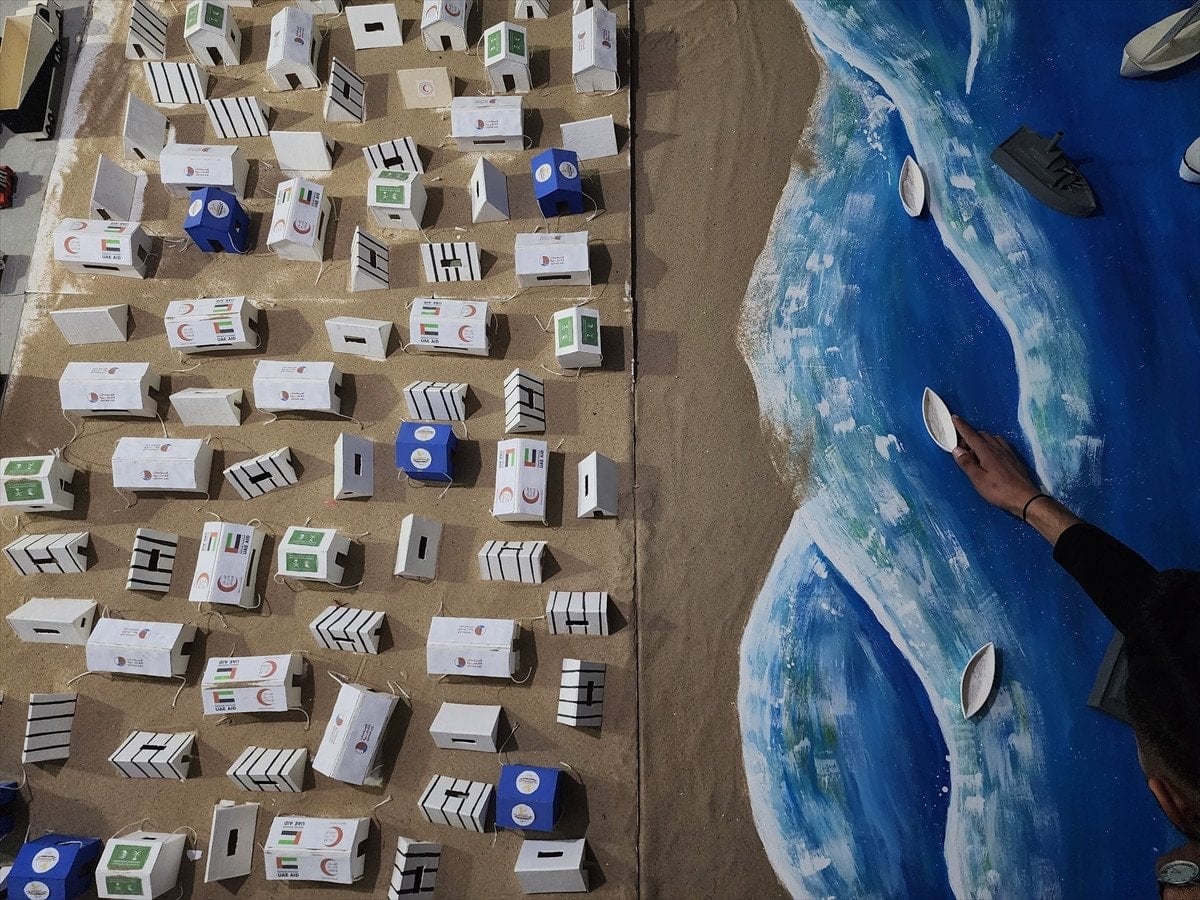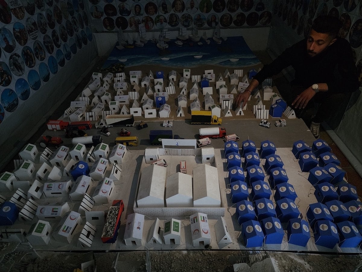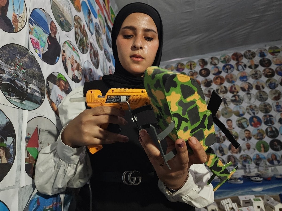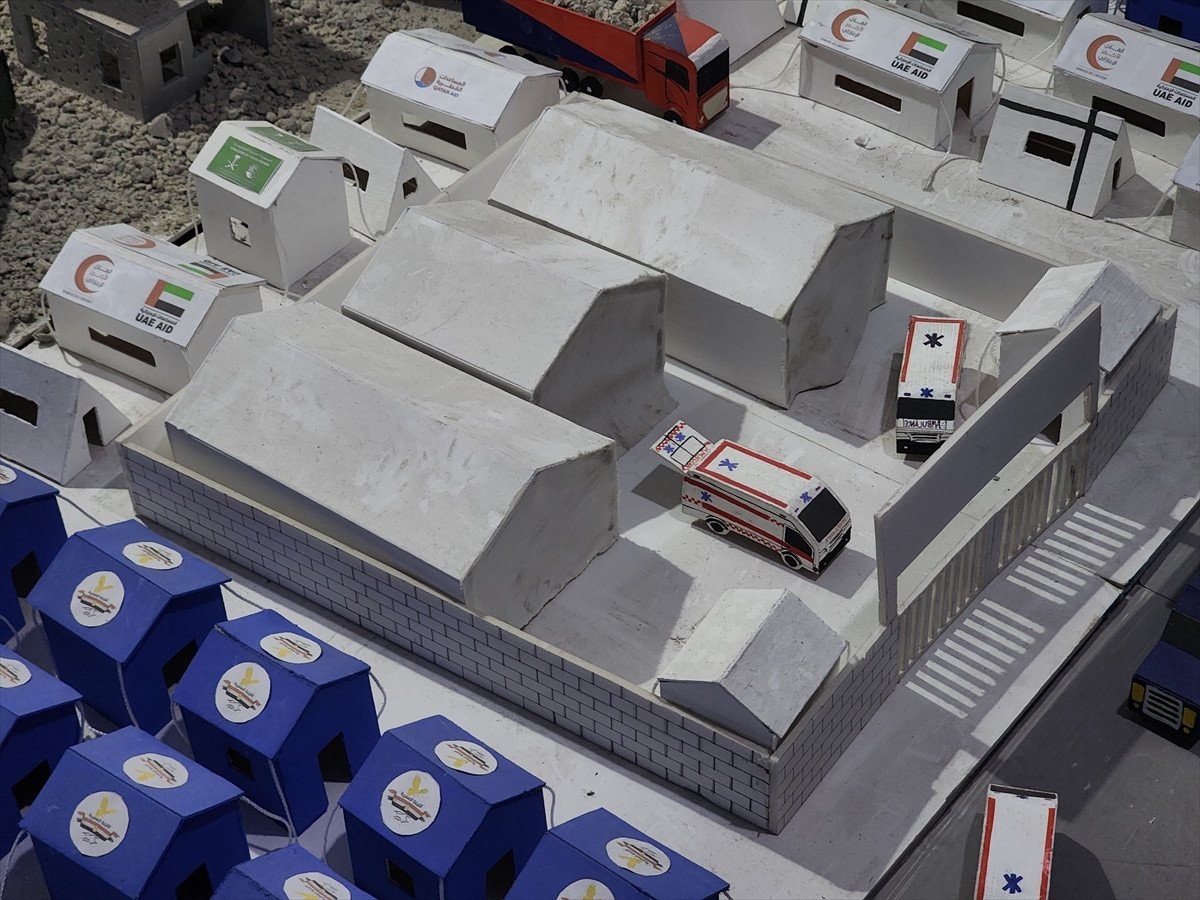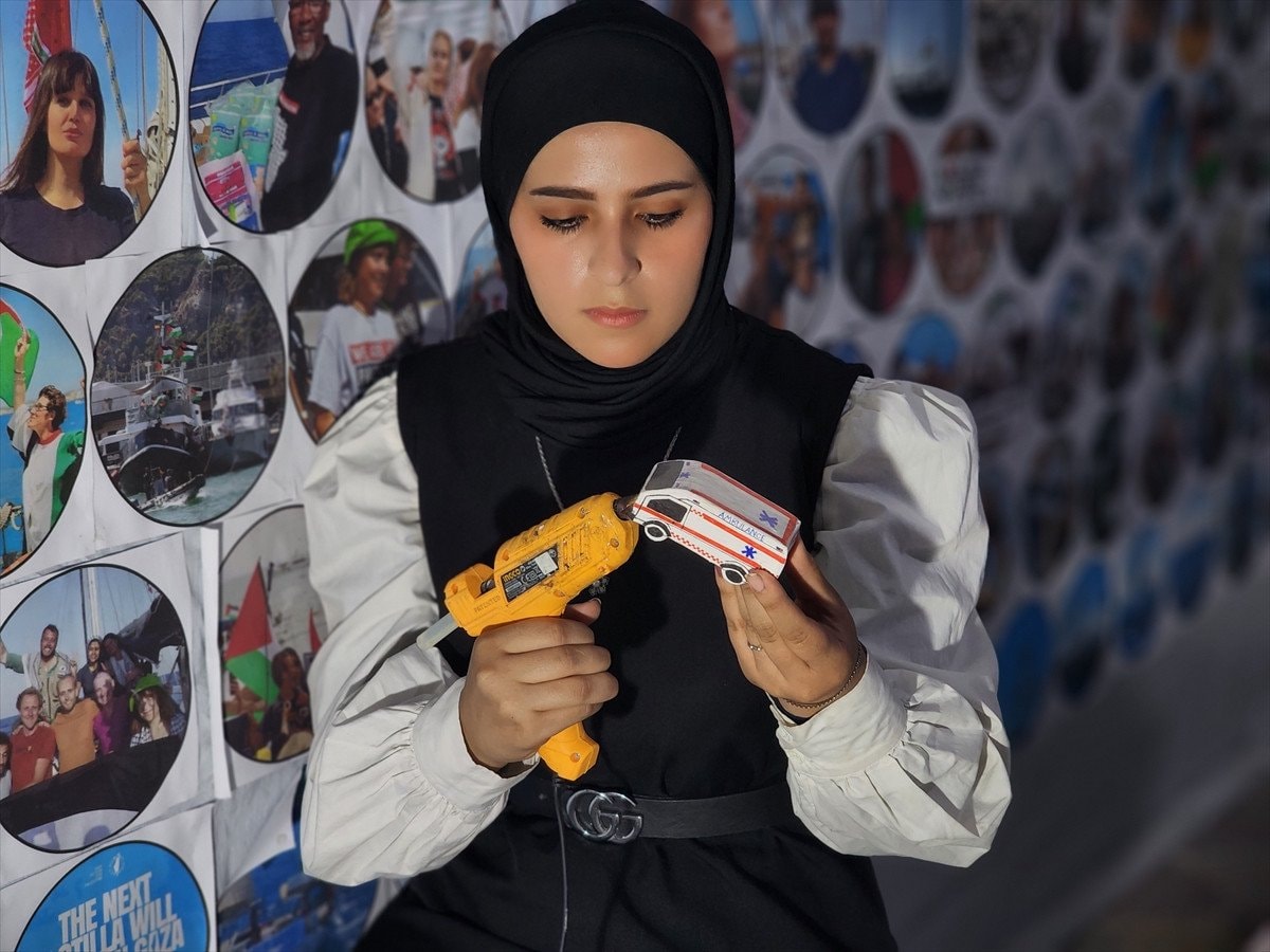 Gazze’nin güneyindeki Han Yunus kentinde yaşayan Muhammed en-Neccar, Yezin Şahin ve Vaad el-Hams, İsrail saldırılarının izlerini taşıyan maketler hazırlıyor. Çalışmalarda, bombardımandan kaçan sivilleri taşıyan araçlar, ambulanslar, sahra hastaneleri, sivil savunma ekipleri ve havadan yardım atan askeri kargo uçakları gibi detaylar yer alıyor.