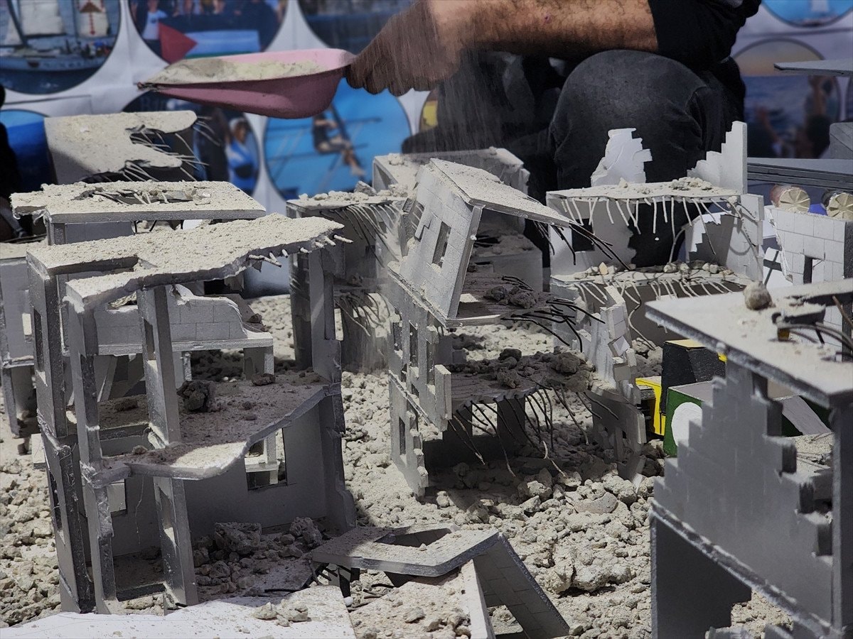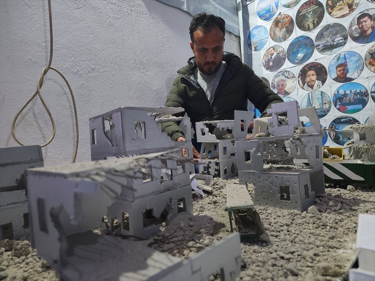 Filistinli gençler, İsrail’in 2 yılı aşkın süredir yoğun saldırılar düzenlediği Gazze Şeridi’nde ortaya çıkan yıkımı ve insani dramı maket çalışmalarıyla gözler önüne seriyor. Yapılan maketlerde, bombardımanla yerle bir edilen mahalleler, yerinden edilen siviller ve hayatta kalma mücadelesi simgesel olarak canlandırılıyor.