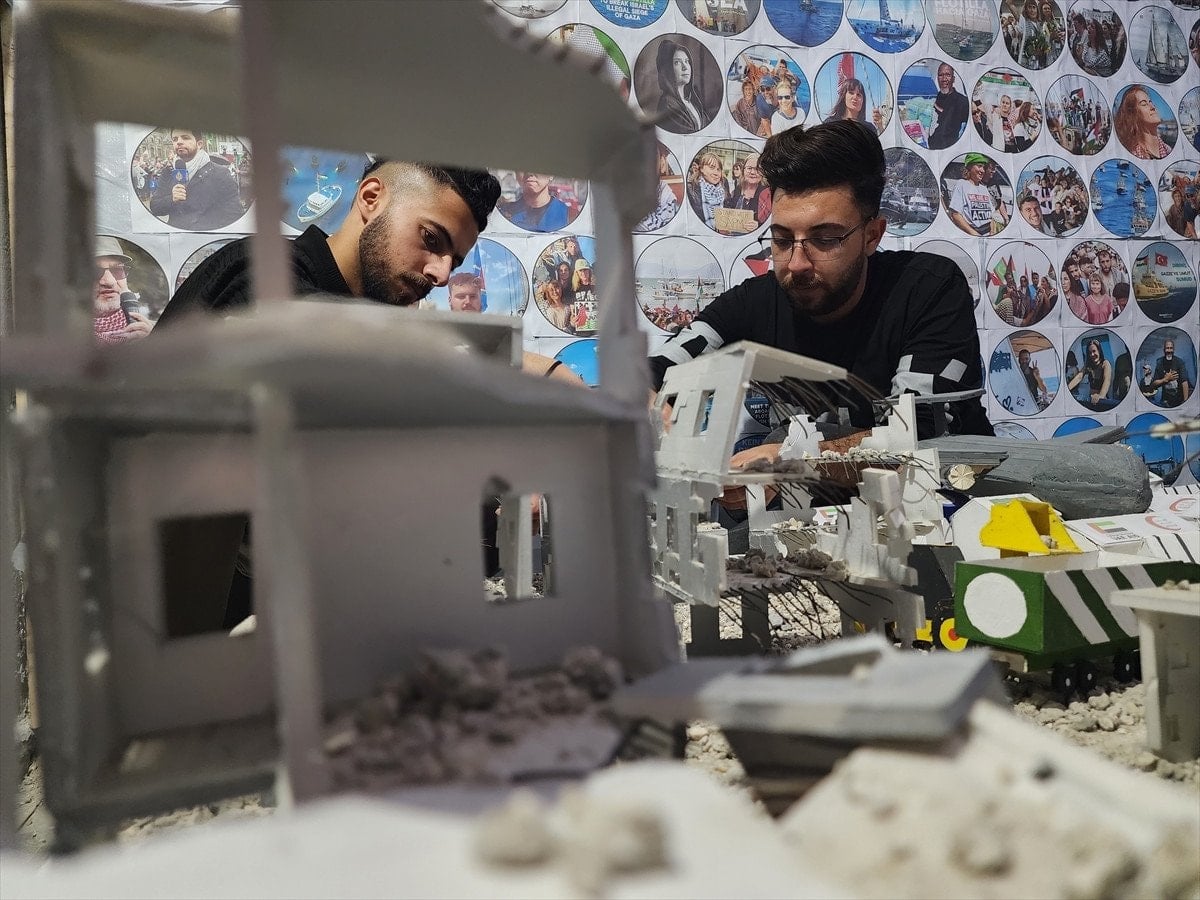 Gençler, yalnızca karadaki yıkımı değil, denizdeki ablukayı da çalışmalarına yansıttı. Gazze açıklarında ablukayı kırmak için yola çıkan tekneler ve onları durduran savaş gemileri de maketlerde yer buldu. Ayrıca, Gazze halkıyla dayanışma gösteren gazeteci ve aktivistlerin fotoğrafları da sergilenerek, hayatını kaybedenlere dikkat çekildi.