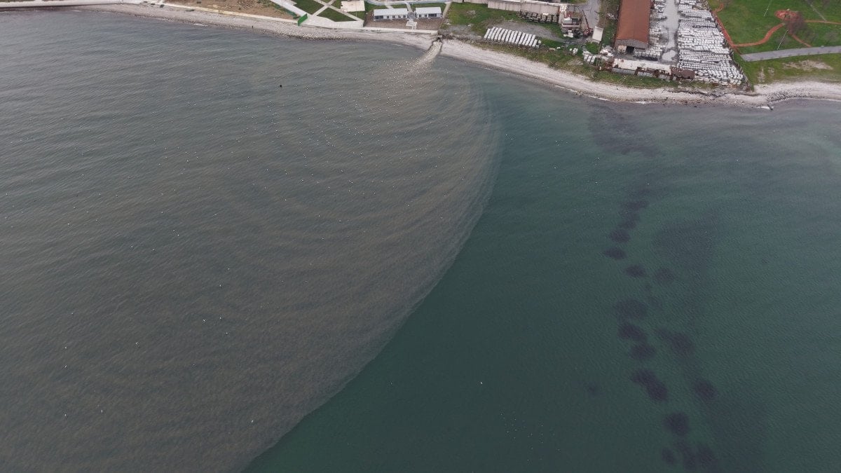 Havadan kaydedilen görüntülerde, atık suyun denize karıştığı yerde deniz yüzeyinin bulanık bir hal aldığı, temiz suyla kirli su arasındaki sınırın net biçimde görüldüğü dikkat çekiyor.
