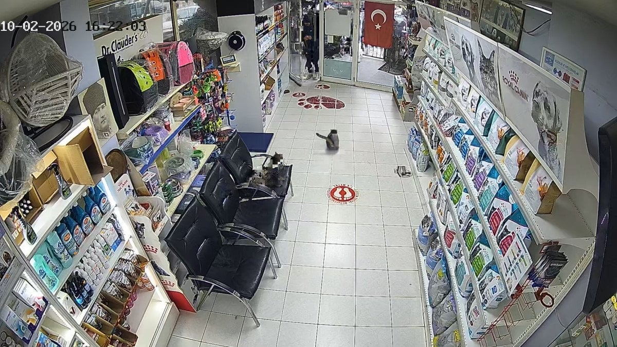 Çocukların torpil attığı, kedinin korkuyla kaçıştığı anlar ise güvenlik kamerasına yansıdı.
