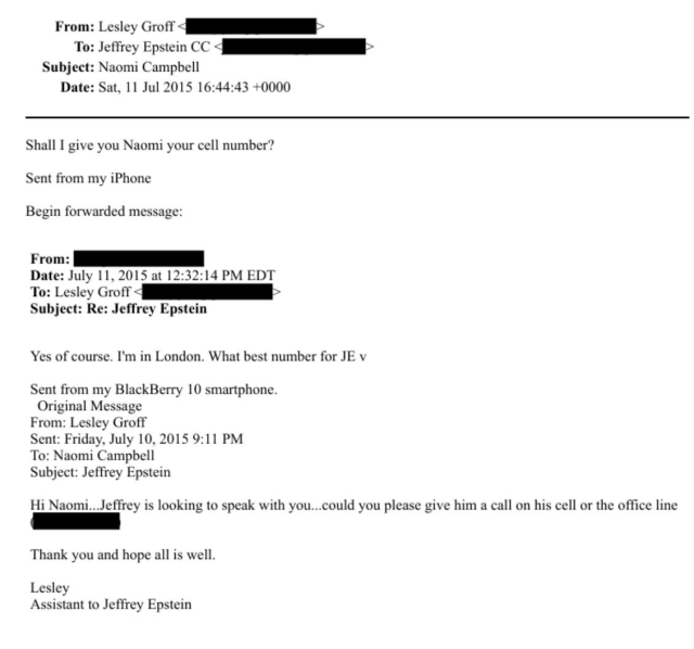 Ghislaine Maxwell: Belgelerde Campbell ile iletişimin çoğu zaman Epstein’ın suç ortağı Ghislaine Maxwell üzerinden yürüdüğü, Maxwell’in Campbell’ı “yakın bir dost” olarak tanımladığı e-postalar da yer alıyor.