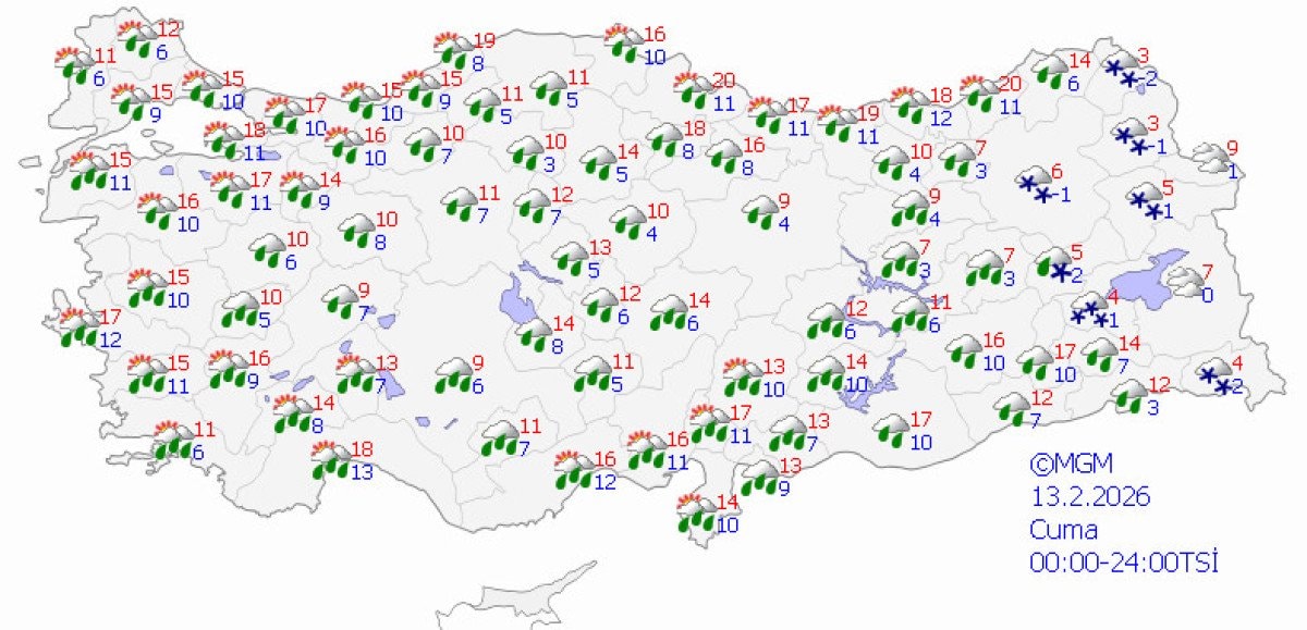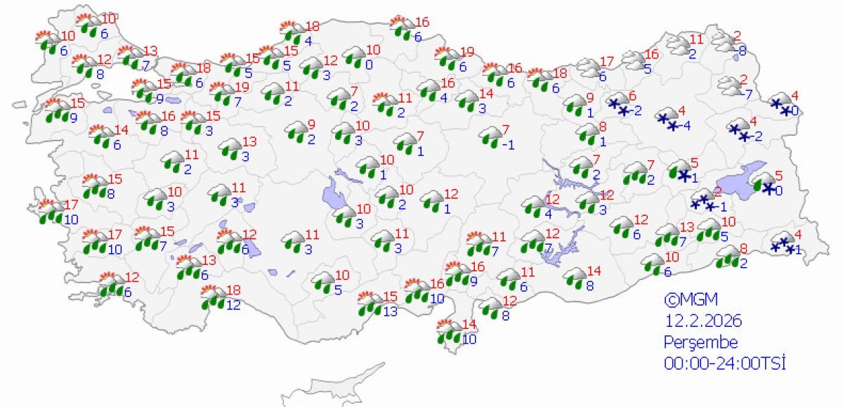 Meteoroloji Genel Müdürlüğü’nün (MGM) son verilerine göre yurt genelinde parçalı ve çok bulutlu bir hava bekleniyor.