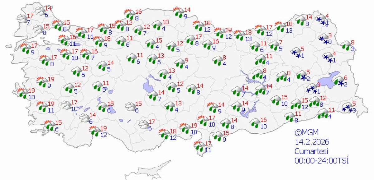 Kar yağışı yüksek rakımlarda sınırlı kalırken, sıcaklıklar kuzey, iç ve batı kesimlerde 3-5 derece artarak mevsim normallerinin üzerinde seyredecek.