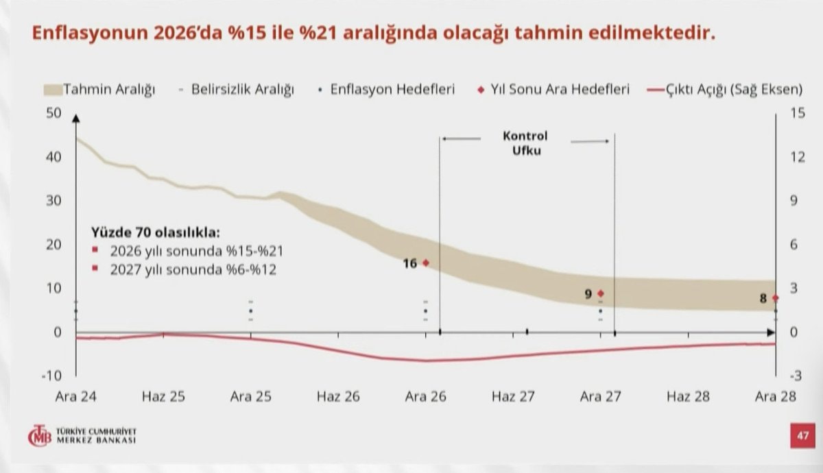 2026 yıl sonu için: Yüzde 15-21 / Orta noktada: 16