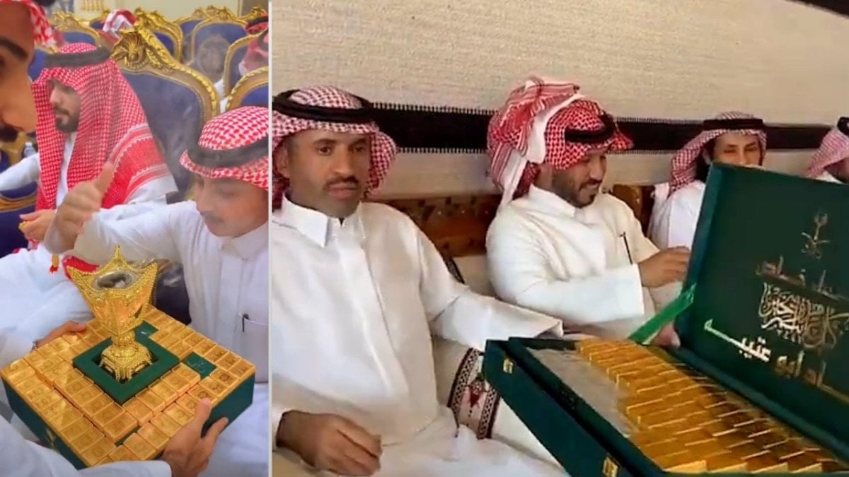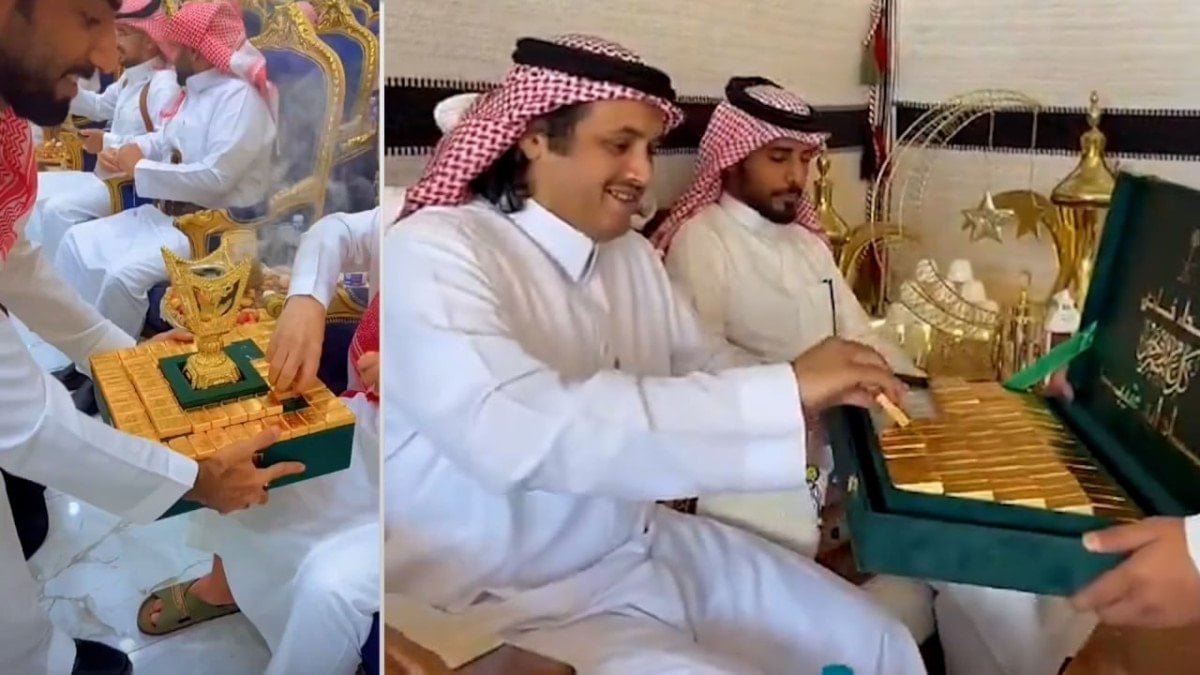 Suudi Arabistan’da bir düğünde çekilen görüntülerde, bir kişinin 24 ayar altın külçelerini, misafirlere dağıttığı iddia edildi.