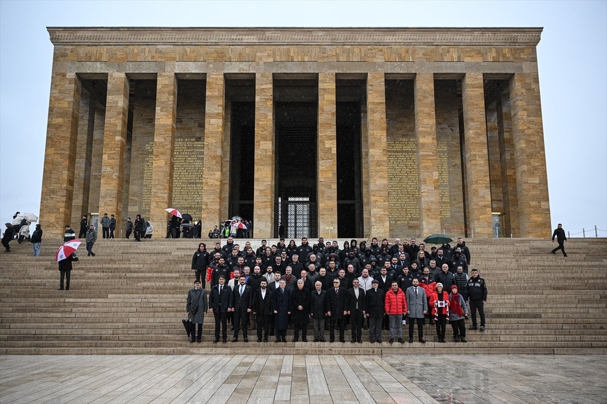 Kırmızı-siyahlı yöneticiler, futbolcular ve taraftarların da katıldığı ziyarette Atatürk’ün mozolesine çelenk bırakıldı, saygı duruşunda bulunuldu.