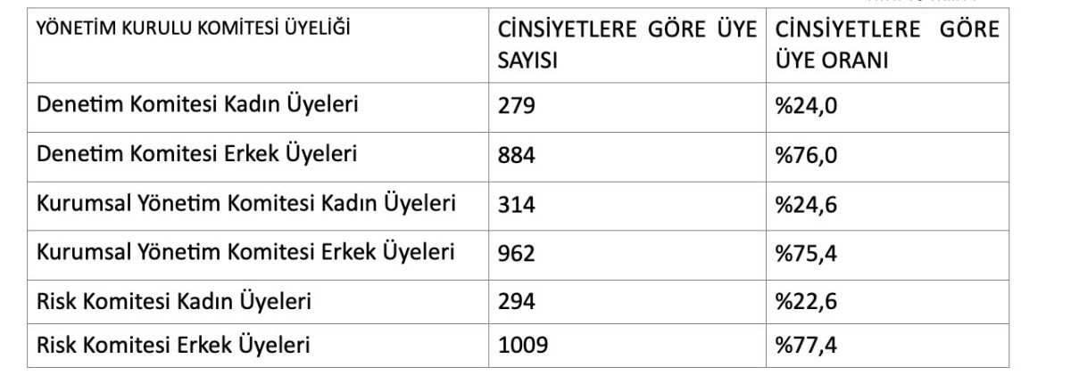 -Risk Komitelerinde ise yüzde 22,6’sını (294 üye) doldurdu.