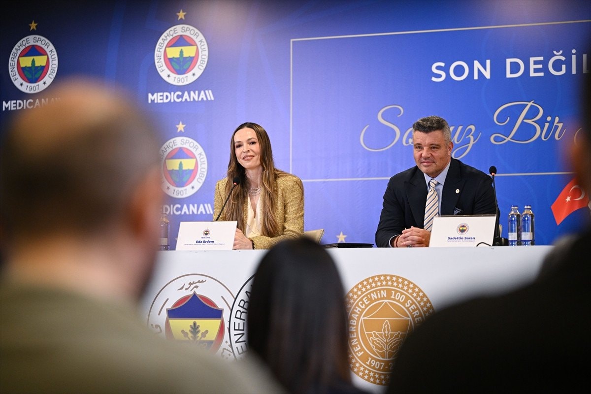 Chobani Stadı’ndaki imza törenine, Eda Erdem’in yanı sıra kulüp başkanı Sadettin Saran ve genel sekreter Orhan Demirel katıldı.