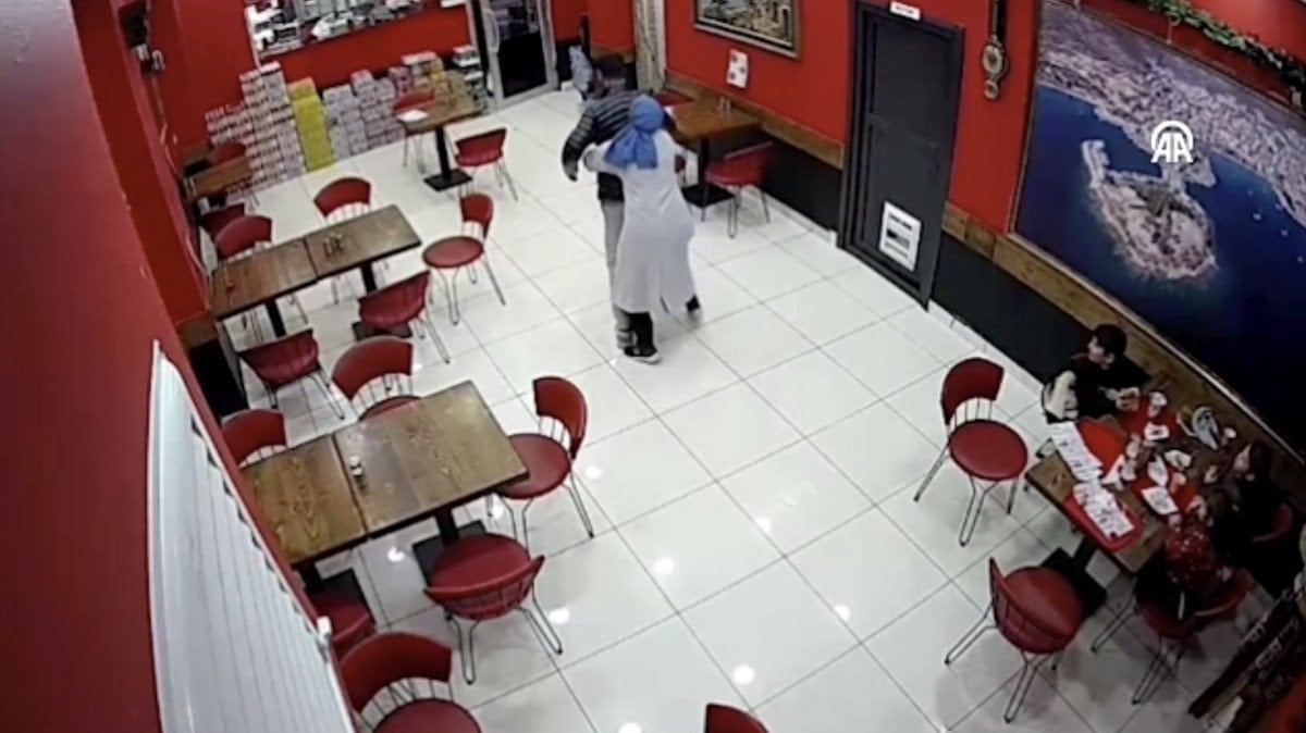 Yaşananlar iş yerinin güvenlik kamerasınca kaydedildi.